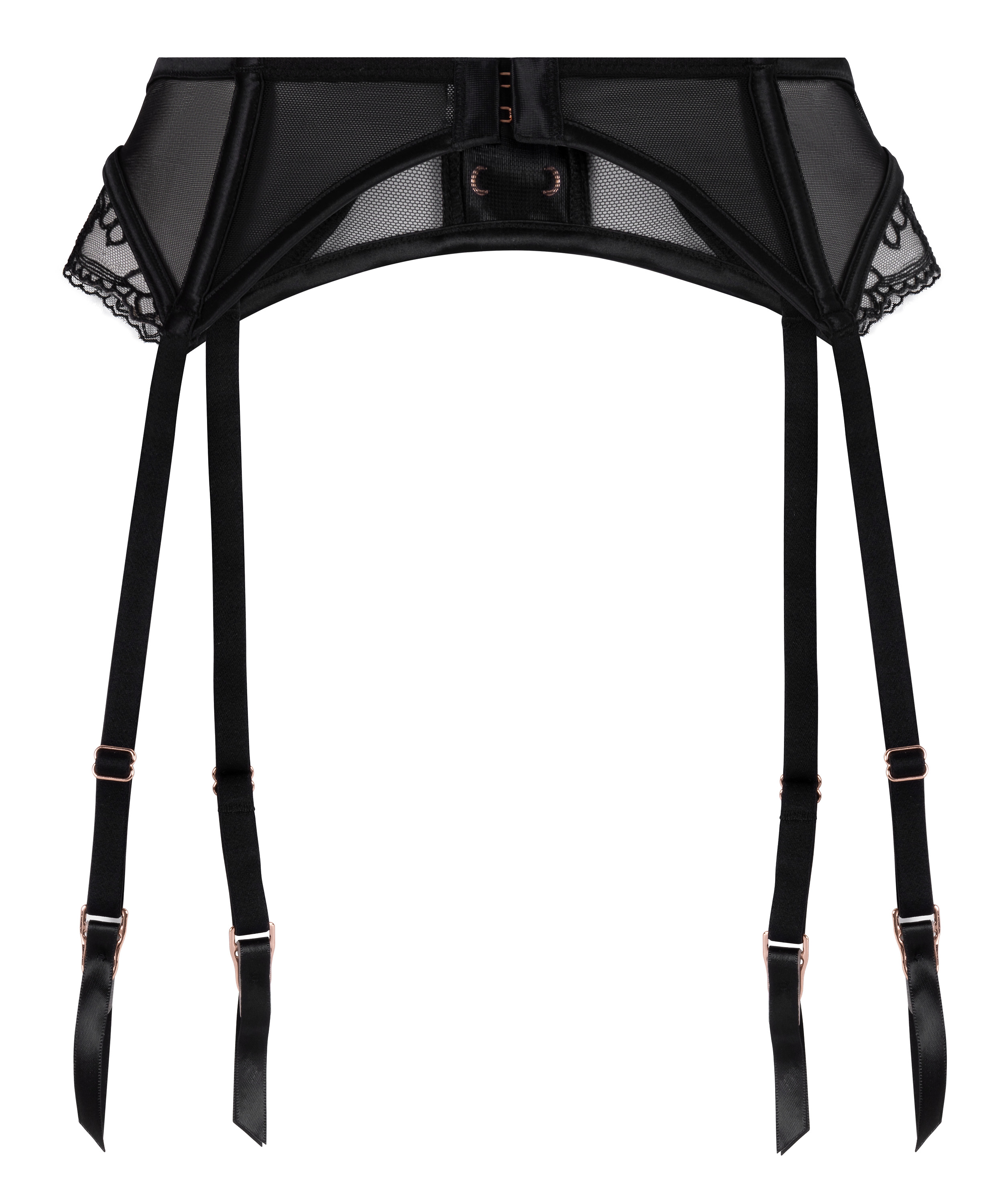 Jeśli czujesz, że w Twoim stylu brakuje ostatniego elementu – to właśnie on! Nasz pas do pończoch Catherine ma gładki pas z siateczki i koronki, który sprawi, że poczujesz się nieodparcie. Delikatne panele koronkowe dodają romantycznego uroku, a regulowane paski zapewniają niezawodne i wygodne dopasowanie. Złote pierścienie wprowadzają nutę glamour do tego wyrafinowanego projektu. Idealny w połączeniu z biustonoszem i satynowymi brazylianami, aby stworzyć spójny look.