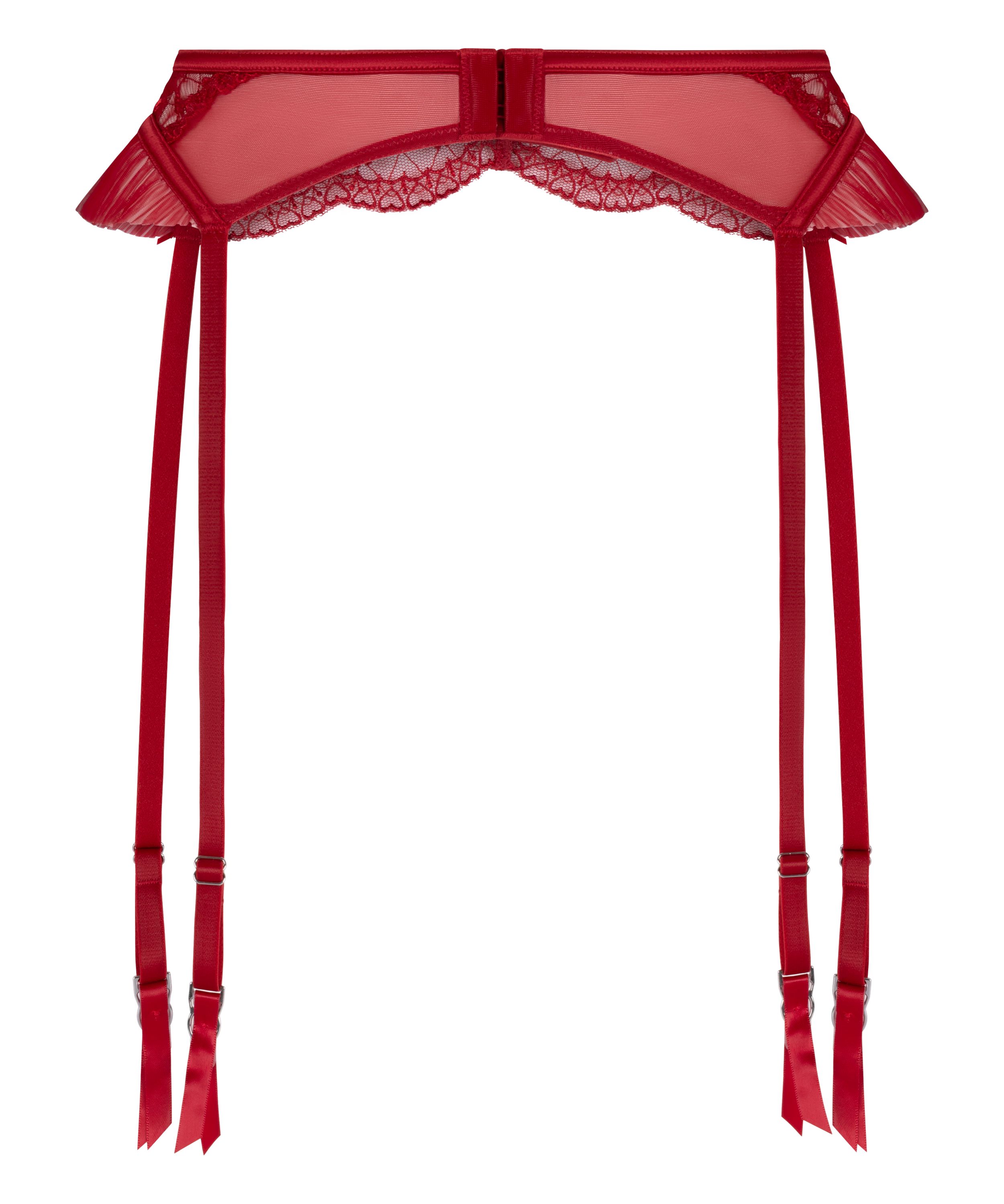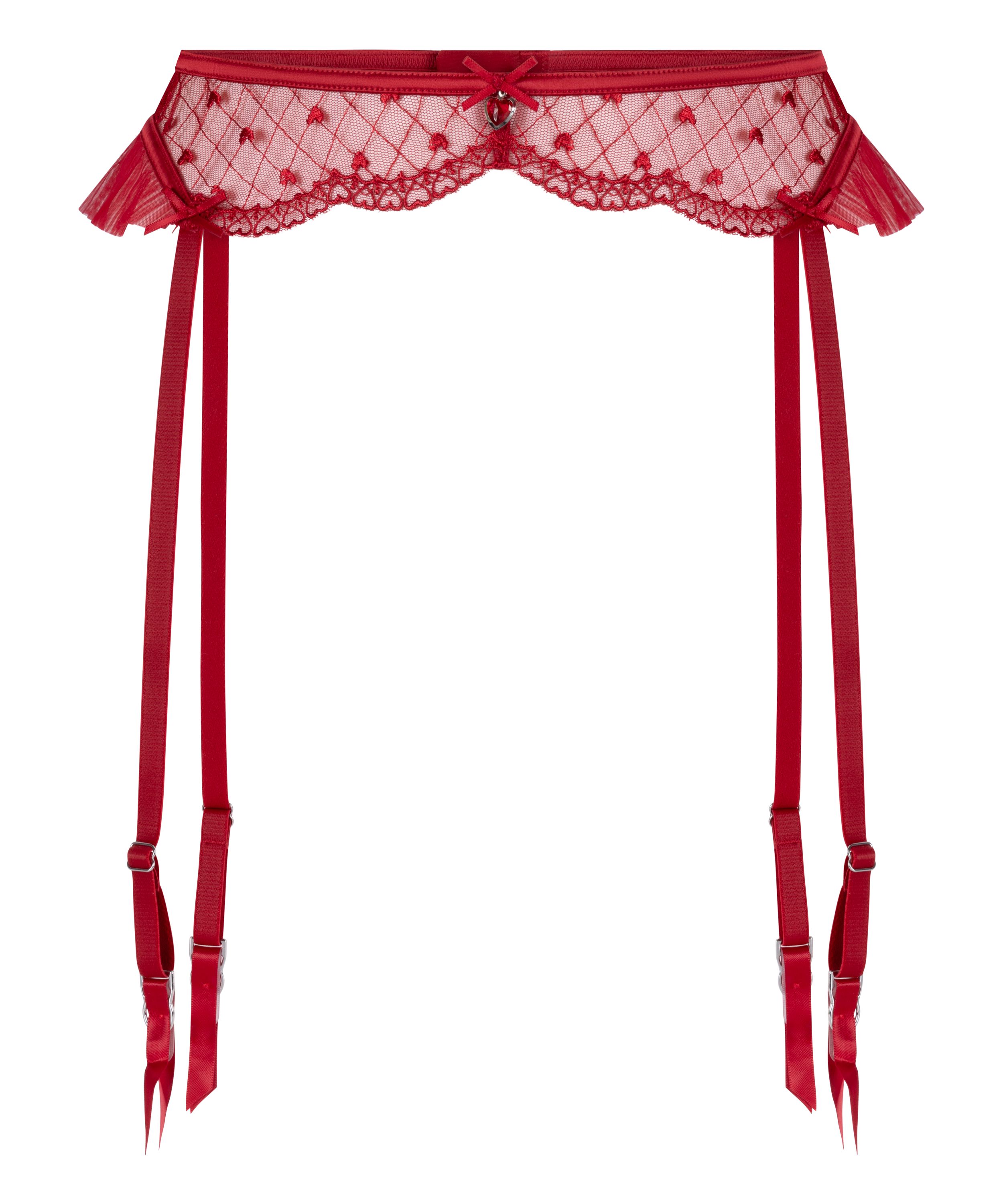 Dodaj romantycznego akcentu swojej stylizacji dzięki temu eleganckiemu pasowi do pończoch, wykonanemu z delikatnej koronki z błyszczącym serduszkiem, które nadaje wyjątkowo kobiecze wykończenie. Regulowane paski zapewniają idealne dopasowanie, a stylowe wstążki dopełniają design inspirowany księżniczkami. Idealny do połączenia z dopasowanym biustonoszem i brazylianami, aby stworzyć spójny zestaw.