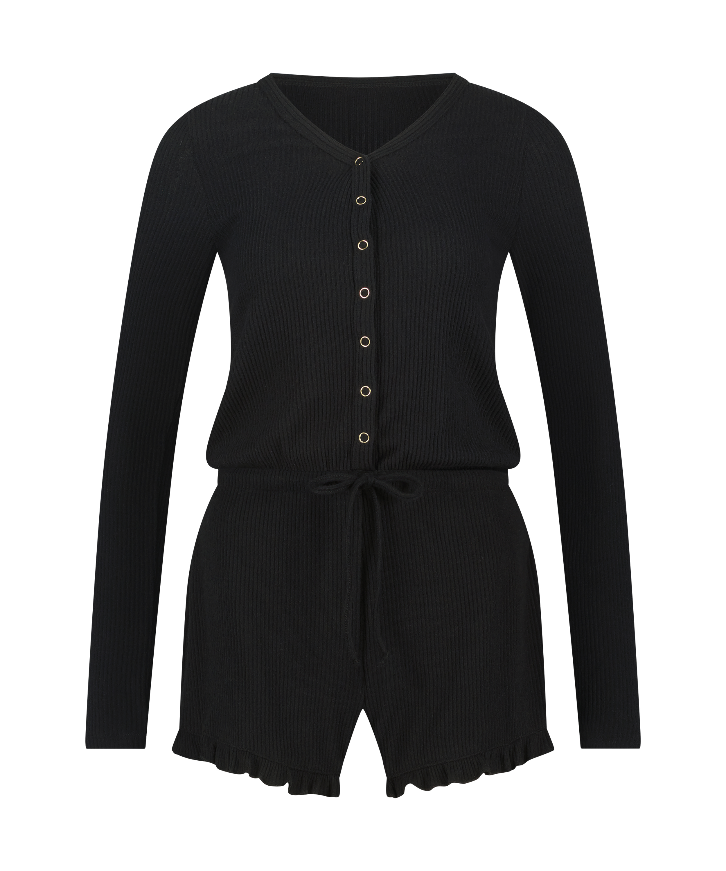 Piżama jednoczęściowa krótka Brushed Rib - Czarny