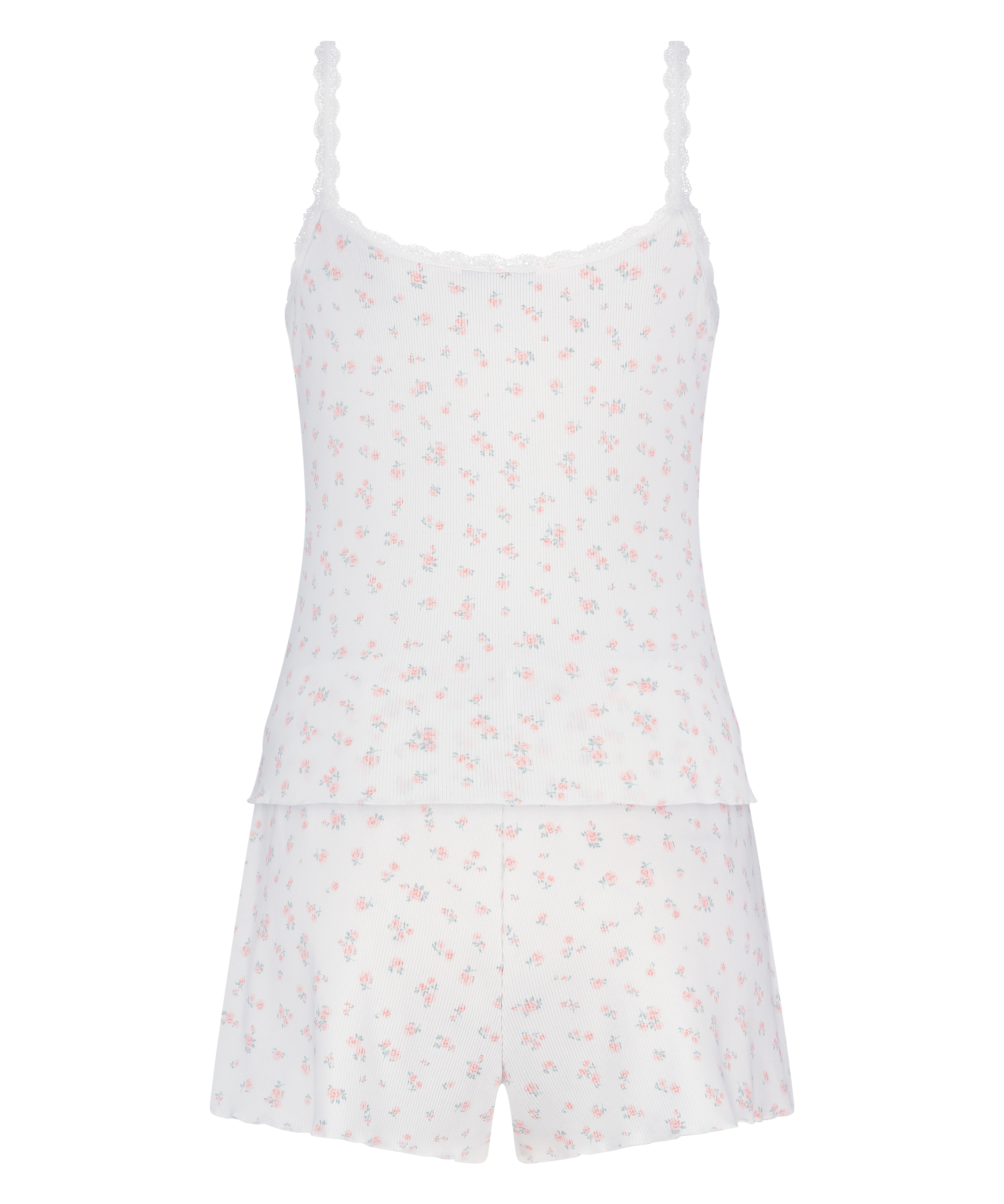 Ulepsz swoją bieliznę nocną dzięki naszemu zestawowi piżamowemu. Ten dwuczęściowy komplet składa się z miękkiego, prążkowanego topu i pasujących do niej szortów, zaprojektowanych tak, aby zapewnić luźne i wygodne dopasowanie. Top ozdobiony jest koronkowymi detalami wzdłuż dekoltu, które dodają kobiecego akcentu do przytulnego designu.