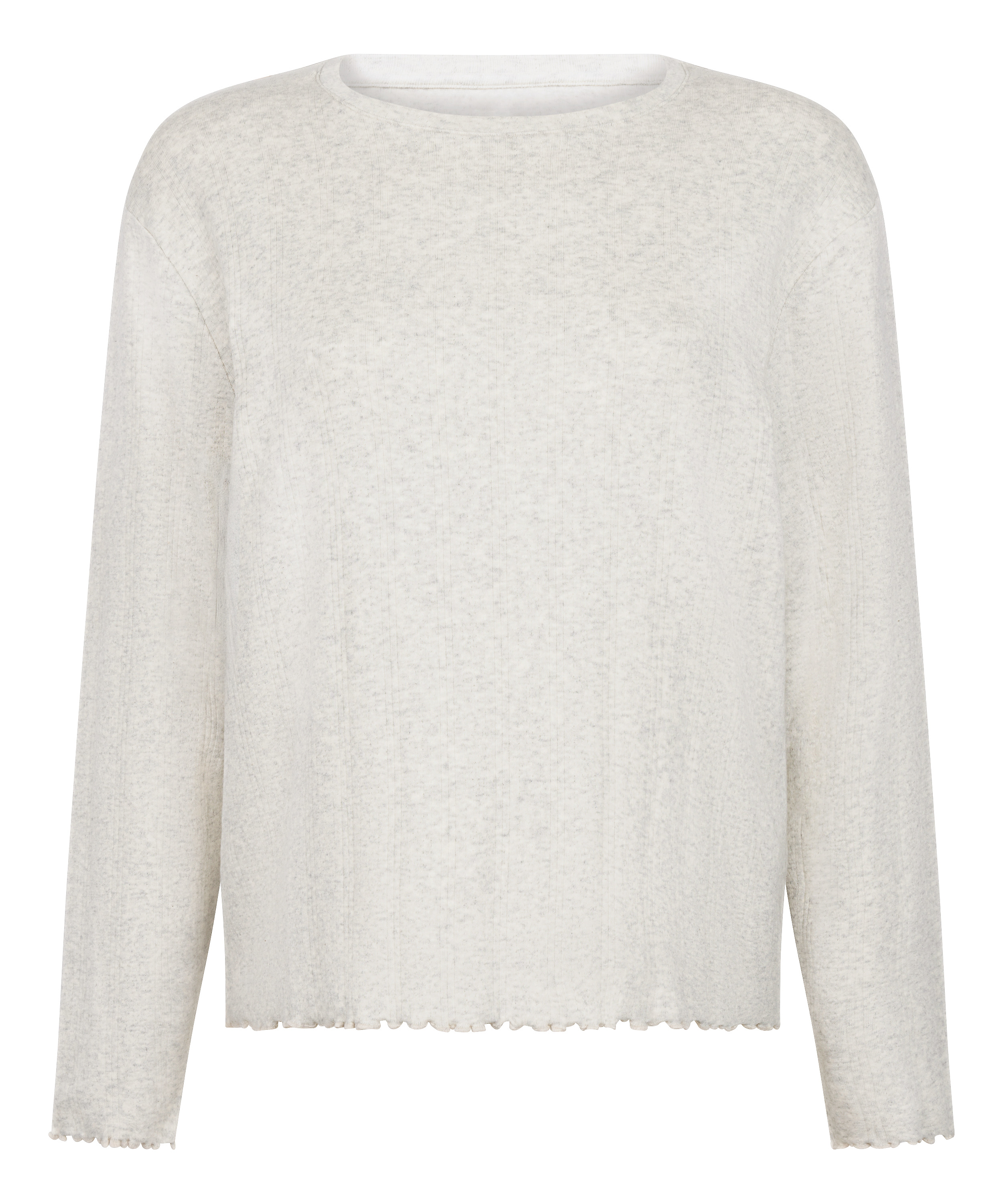 Odpocznij w pełnym komforcie w tej luźnej górze od piżamy, wykonanej z tkaniny pointelle, która zapewnia przewiewność i lekkość. Subtelny, fakturowany wzór dodaje elegancji, a swobodny krój gwarantuje pełną swobodę ruchów i wygodę przez całą noc.