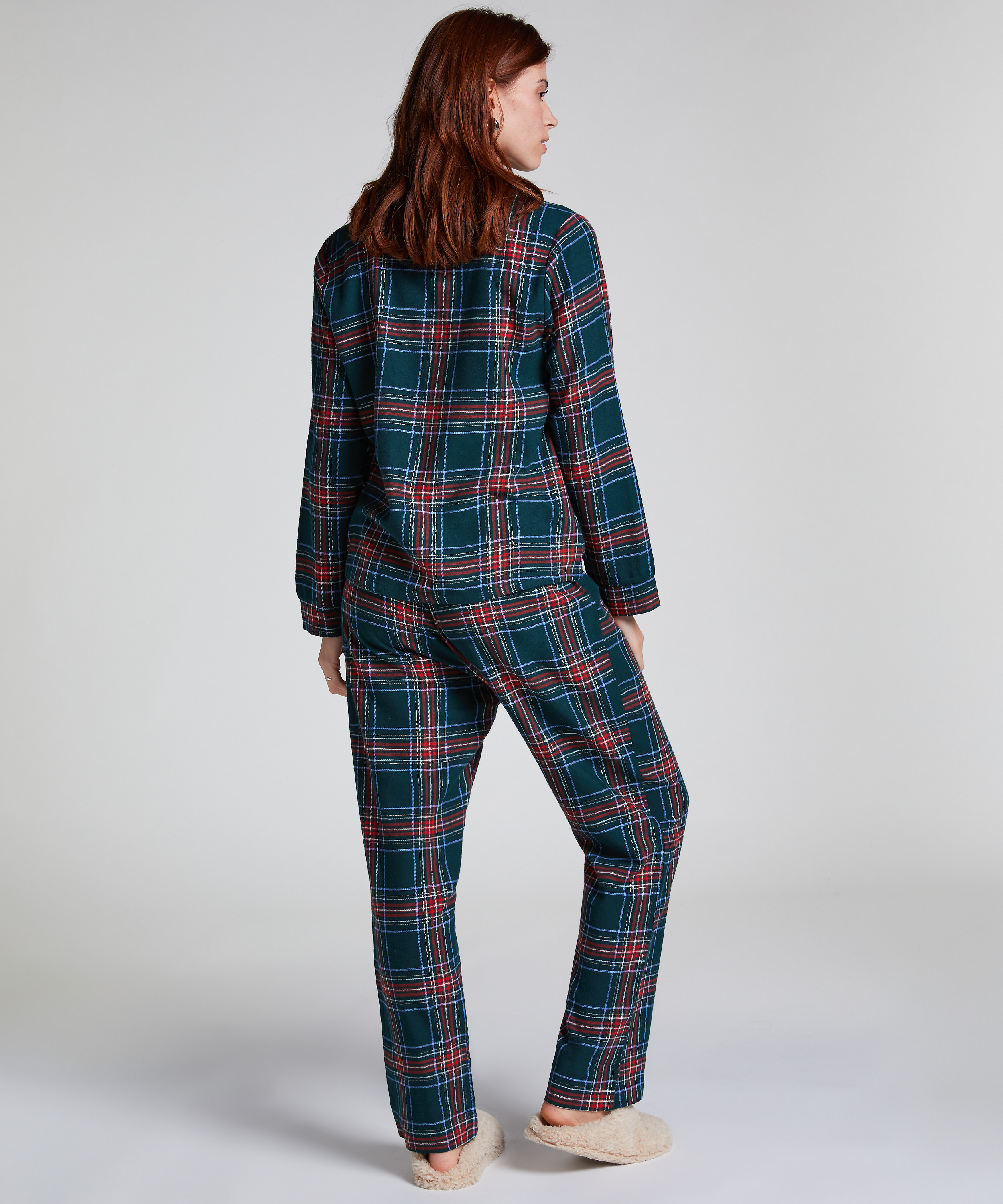 Przygotuj się na wieczór z tą piękną piżamą! Długie i szerokie spodnie mają elastyczny pas. Idealne!
