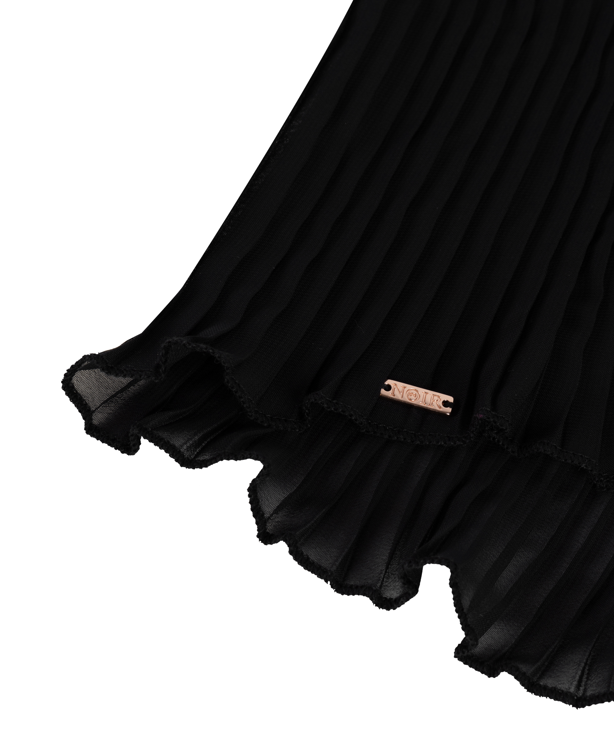 Plisowana koronkowa koszulka na ramiączkach - Czarny
