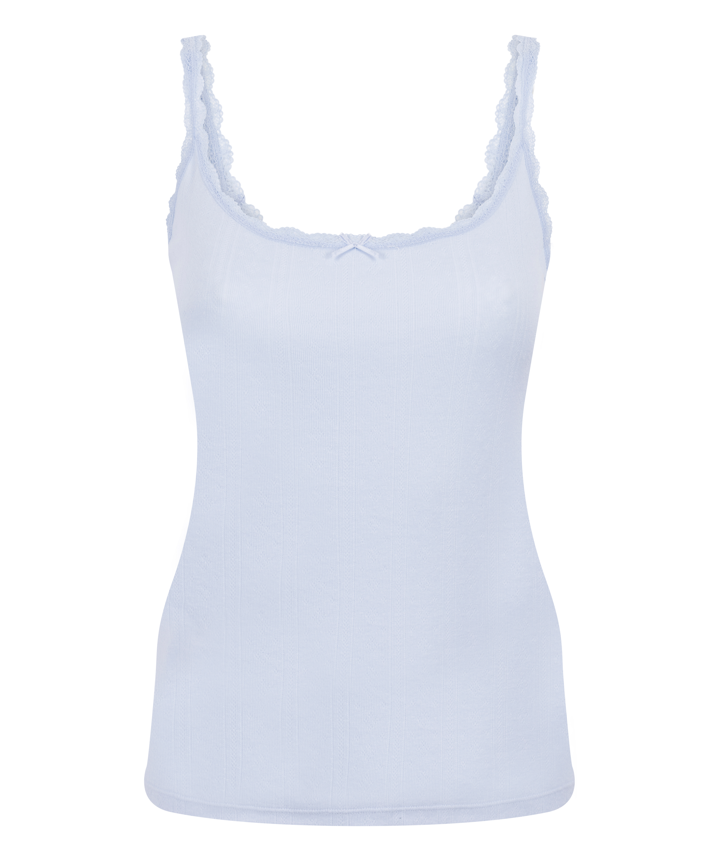 Postaw na naturalny urok z naszym podkoszulkiem, który stanowi idealne połączenie kobiecości i wygody. Wykonany z miękkiej tkaniny pointelle, ten podkoszulek charakteryzuje się delikatnym, teksturowanym wzorem, który dodaje mu subtelnej elegancji. Koronkowe detale wzdłuż dekoltu dodają romantycznego akcentu.