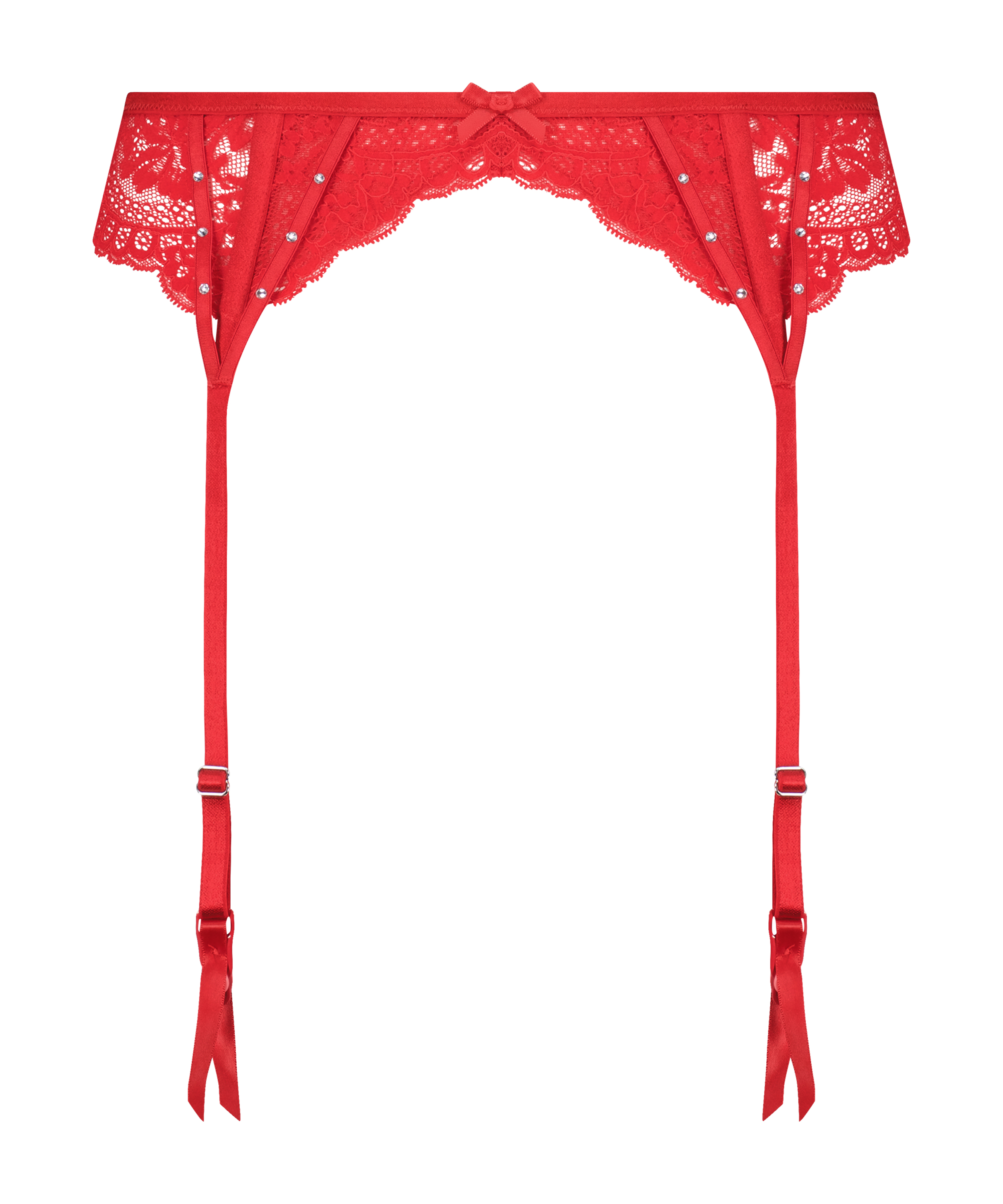 Piękne podwiązki o klasycznym kroju, ozdobione kryształkami. Kwiecista koronka z przodu, zapięcie na haftki z tyłu. Podwiązki do pończoch modelują talię i podkreślają sylwetkę. Noś je z biustonoszem Mariah, figami i pasującymi pończochami, aby uzyskać wspaniały, kompletny zestaw bielizny.