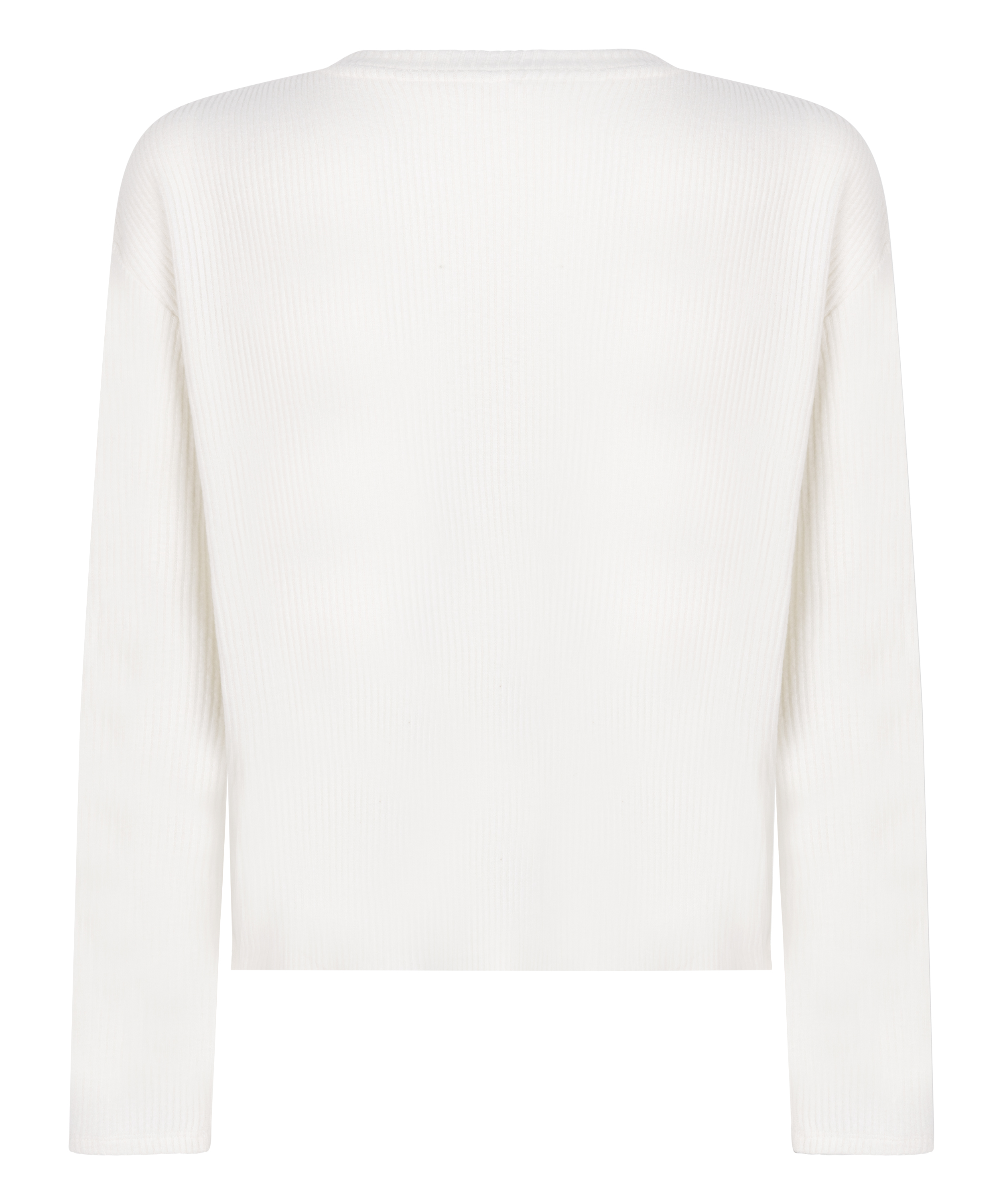 Prążkowany, dzianinowy top od piżamy z długim rękawem - Biały