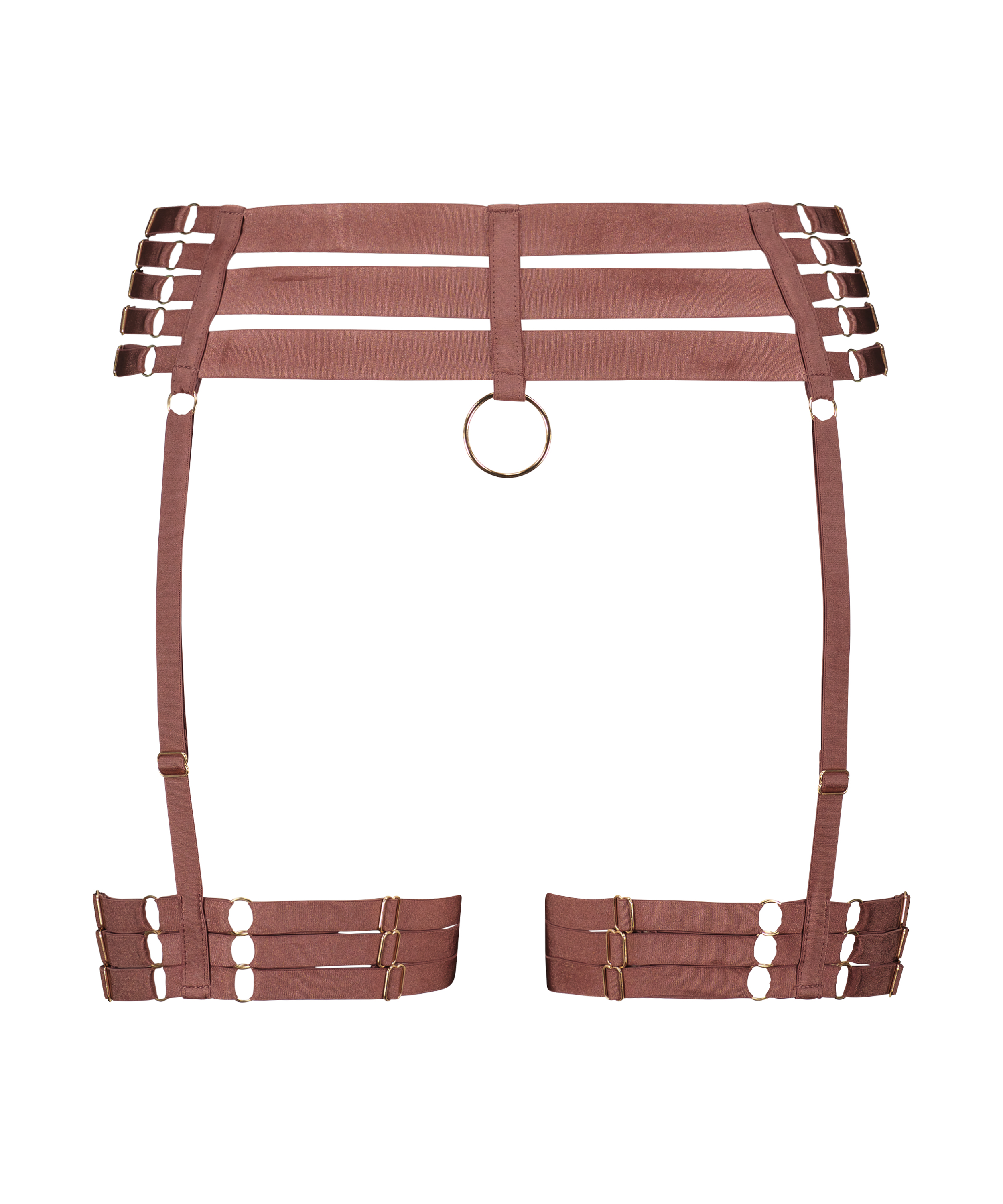 Dodaj do swojego zestawu ten seksowny pas do pończoch. Z dużą ilością pasiastych detali na biodrach i na nogach. Ozdobne okucia pozostawiają miejsce na przypięcie łańcuszków. Część kolekcji Private.