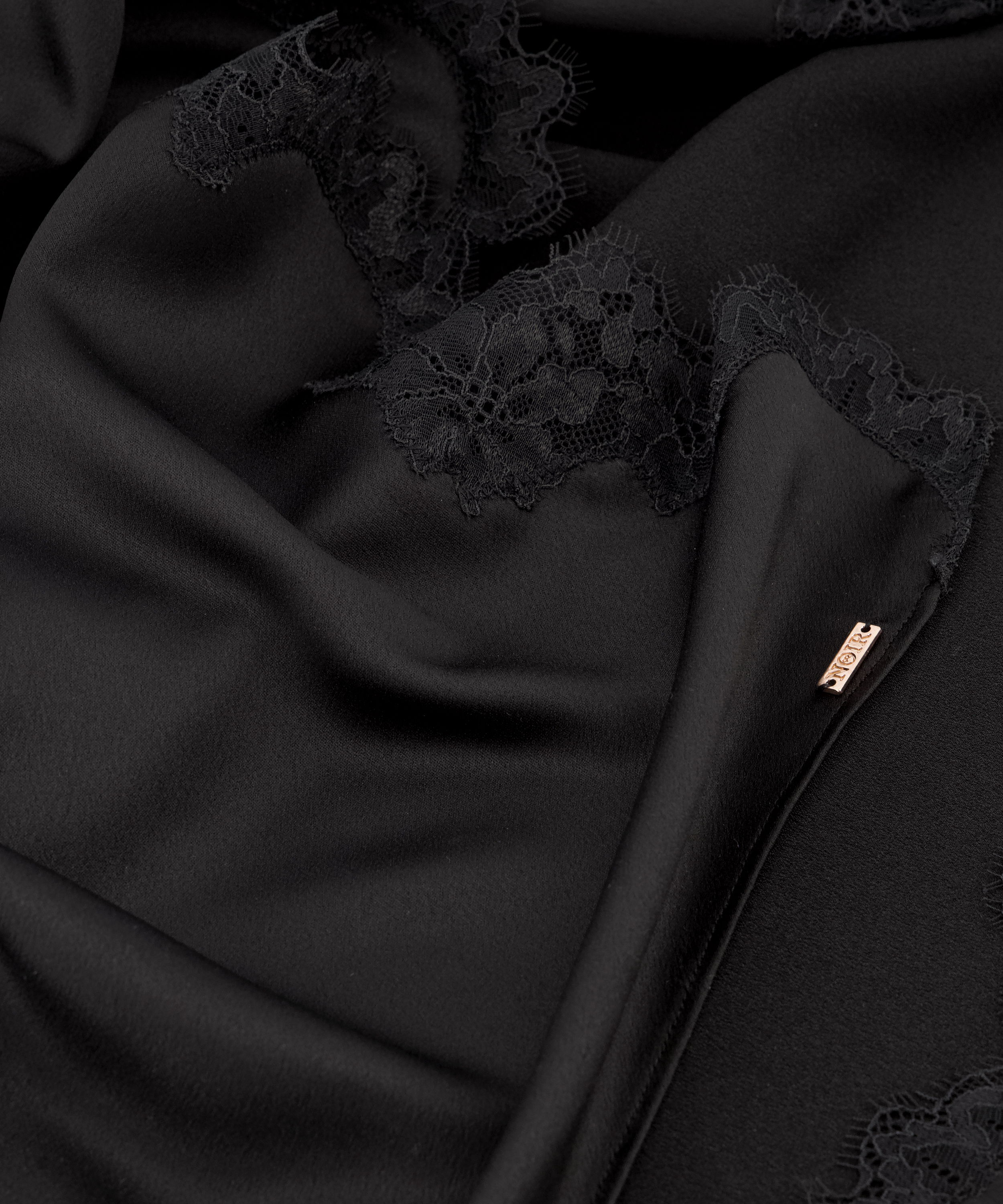W tej halce poczujesz się kobieco! Jest wykonana z satynowego materiału i ma koronkowe wykończenie. Jest długa i sięga do kostek. Cienkie ramiączka są regulowane. Część kolekcji Noir.