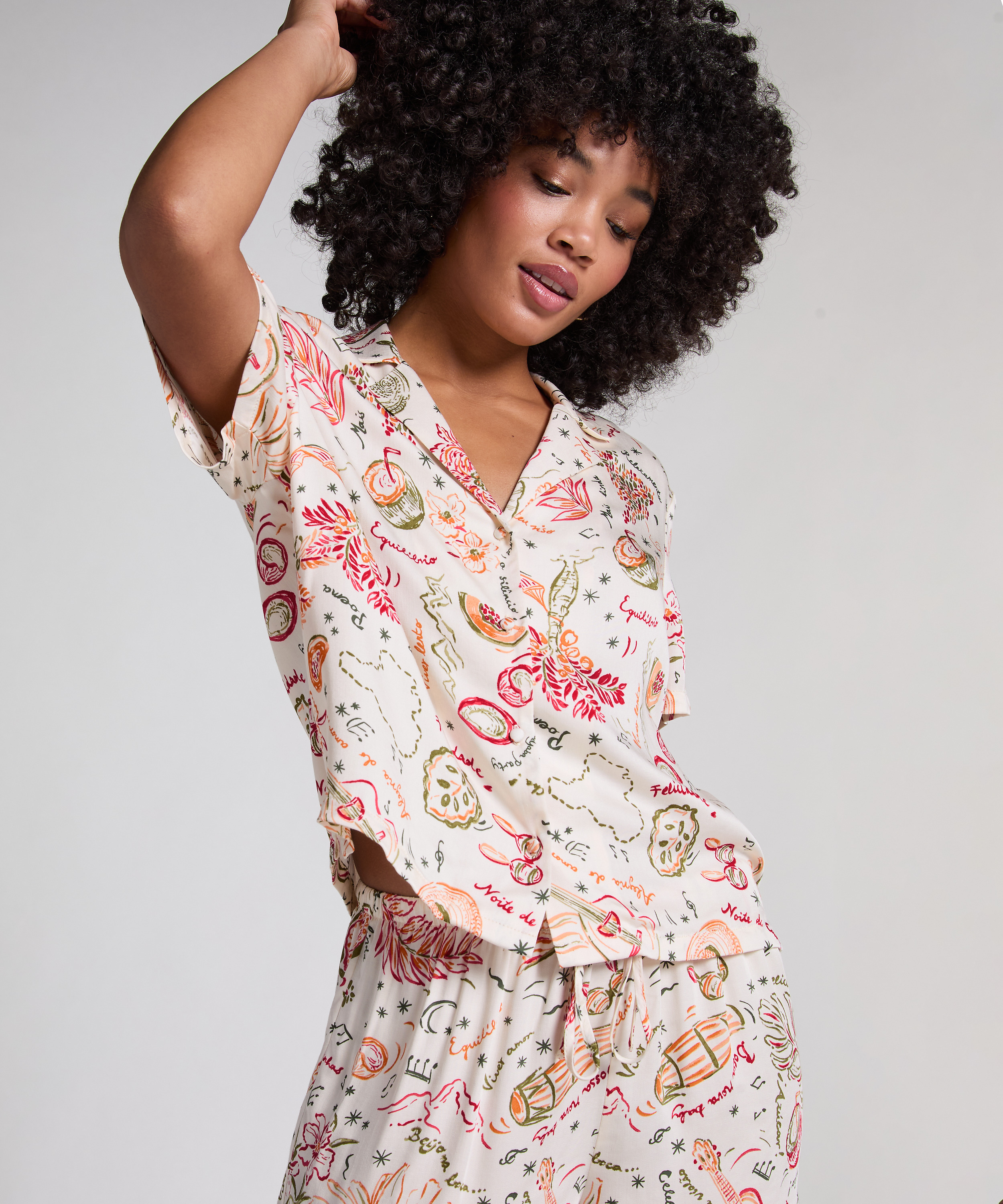 Ta koszula nocna jest wykonana z miękkiego i lekkiego materiału, który zapewnia najwyższy komfort i spokojny sen. Elegancki kołnierzyk ze składanym wzorem i dekolt w kształcie litery V dodają odrobinę wyrafinowania. Pokryte materiałem guziki dopełniają wyrafinowany wygląd, zapewniając spokojny, a zarazem stylowy sen.