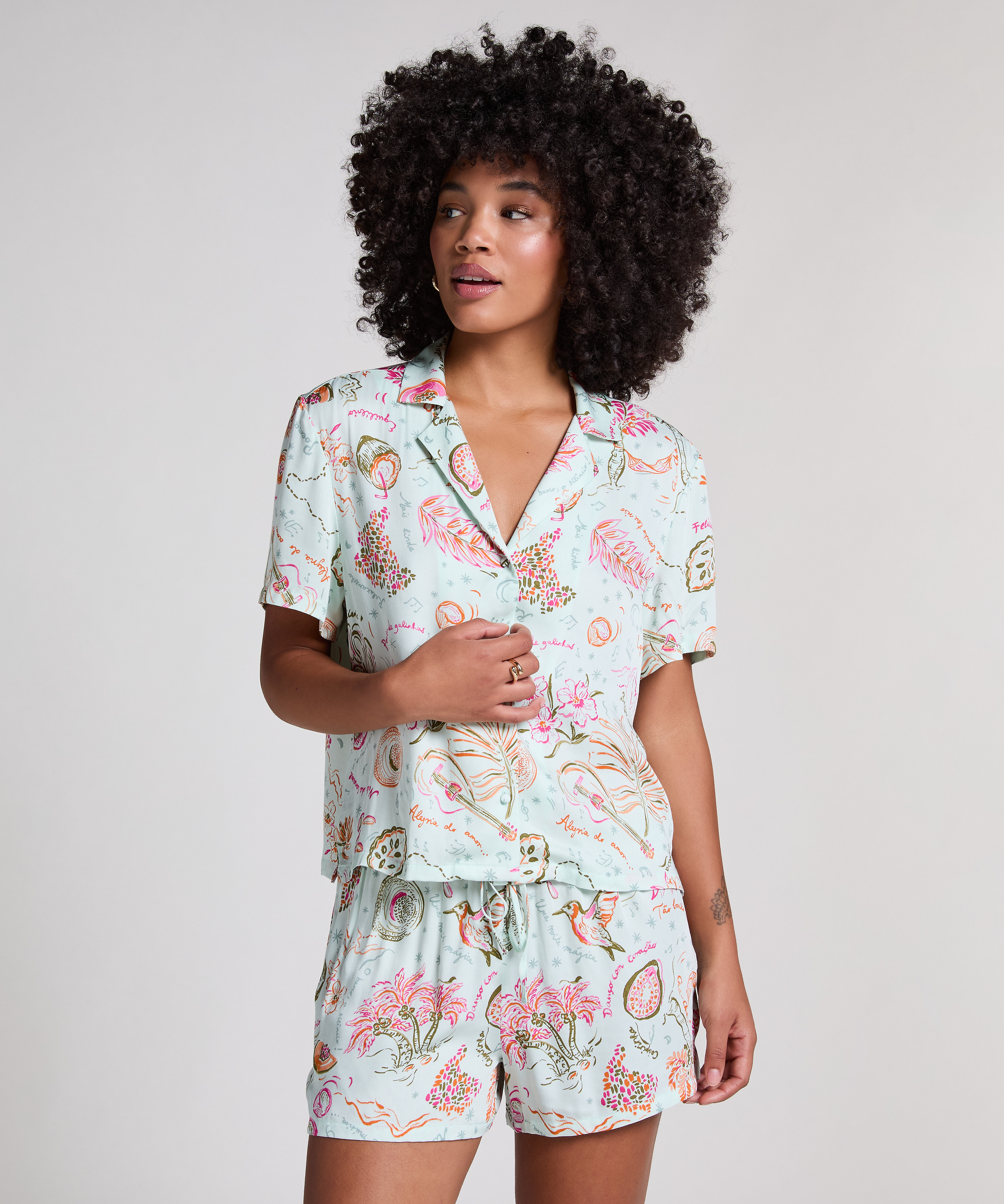 Ta koszula nocna jest wykonana z miękkiego i lekkiego materiału, który zapewnia najwyższy komfort i spokojny sen. Elegancki kołnierzyk ze składanym wzorem i dekolt w kształcie litery V dodają odrobinę wyrafinowania. Pokryte materiałem guziki dopełniają wyrafinowany wygląd, zapewniając spokojny, a zarazem stylowy sen.