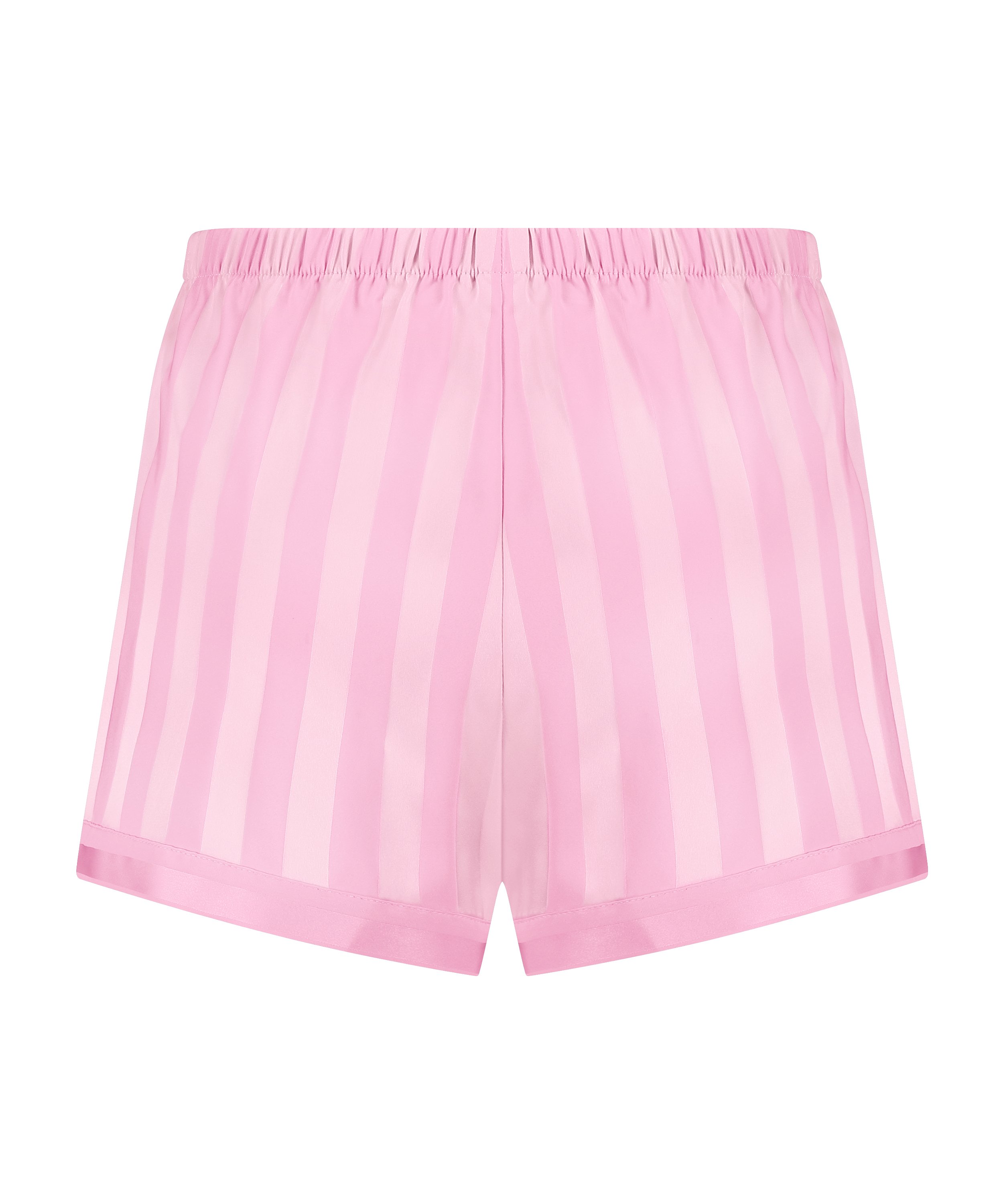 Te spodenki od piżamy mają satynowy wygląd i dotyk. Posiada gumkę w pasie oraz pasek do zawiązania. Połącz z pasującym topem, aby stworzyć uroczy komplet piżamy.