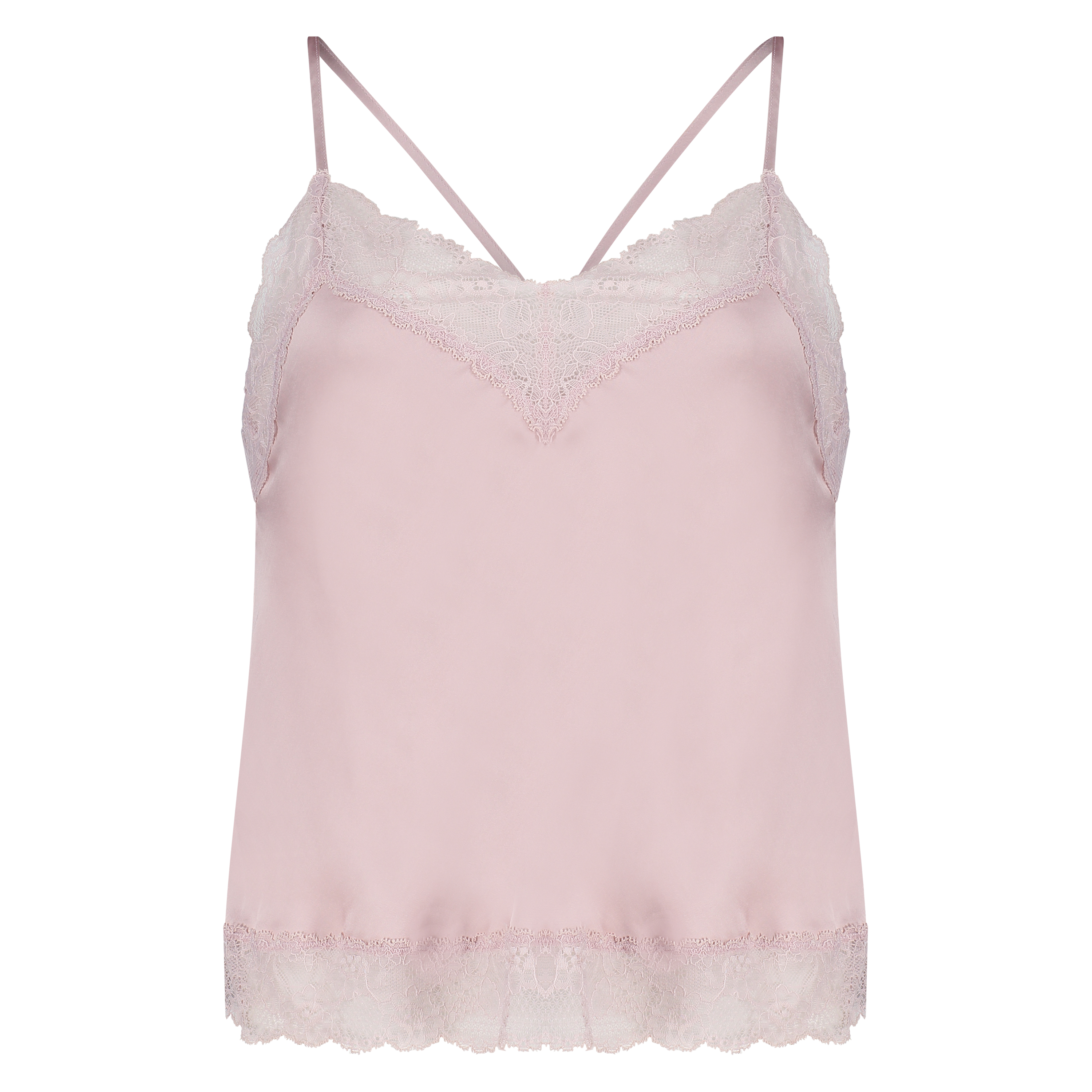 Top wykonany jest z eleganckiej satyny. Górna krawędź obszyta jest koronką. Tylne paski są regulowane. Połącz z pasującymi dodatkami, aby uzyskać kompletny zestaw!