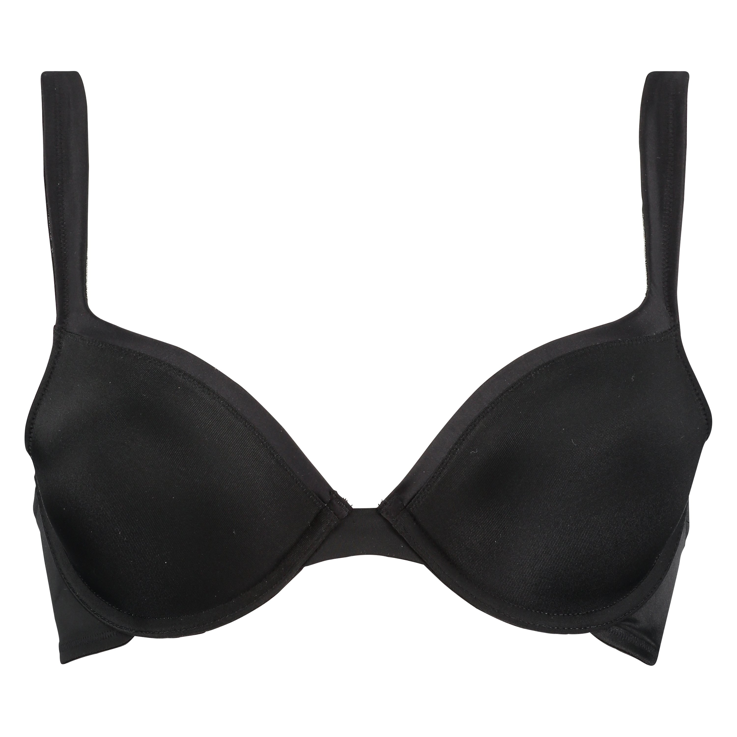 Satynowy usztywniony biustonosz z fiszbinami - Czarny