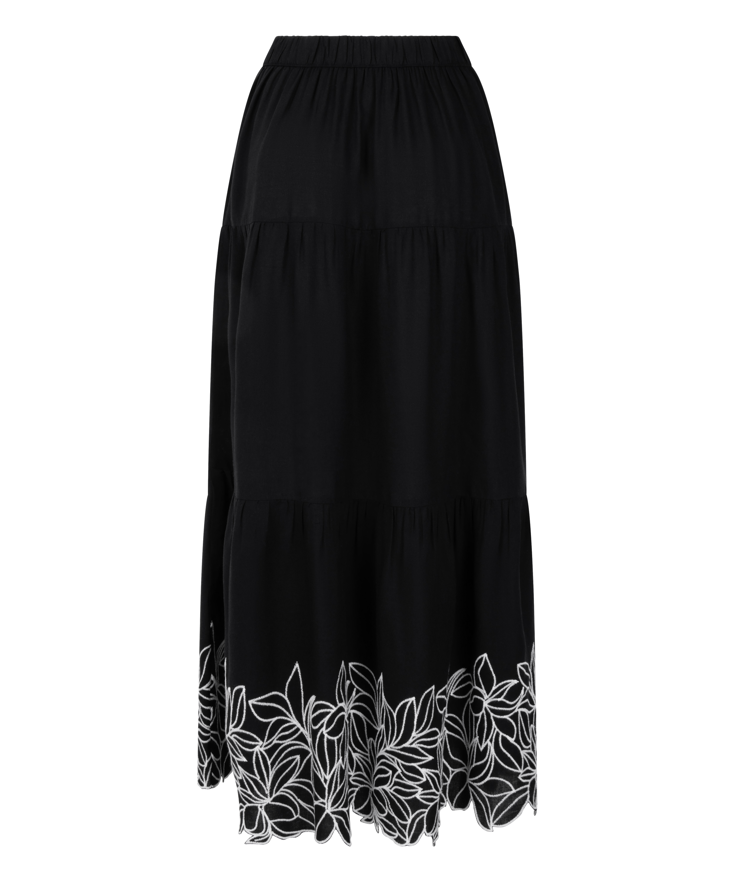 Zrób efekt „wow” dzięki tej eleganckiej spódnicy z naszej kolekcji strojów kąpielowych – zaprojektowanej, by przyciągać wzrok na plaży lub przy basenie. Elastyczny tył w pasie gwarantuje idealne dopasowanie, a piękny haftowany nadruk łączy swobodny styl z subtelnymi, intrygującymi detalami. Jej zwiewna sylwetka nadaje ruch i lekkość Twojej nadmorskiej stylizacji. Idealna do noszenia na ulubiony strój kąpielowy lub w połączeniu z eleganckim crop topem.