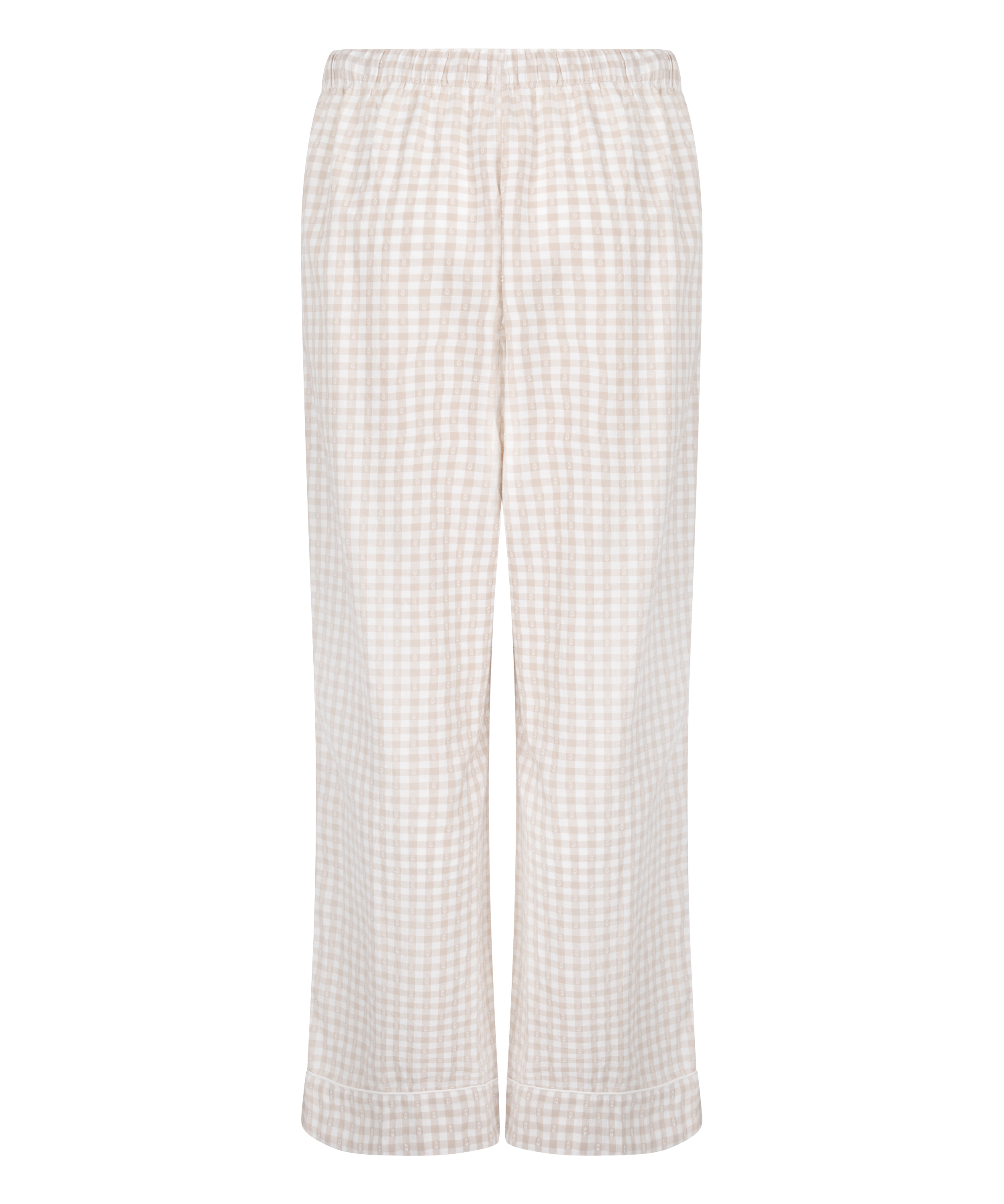 Spodnie Piżamowe Dobby Tkana Bawełna - Beżowy