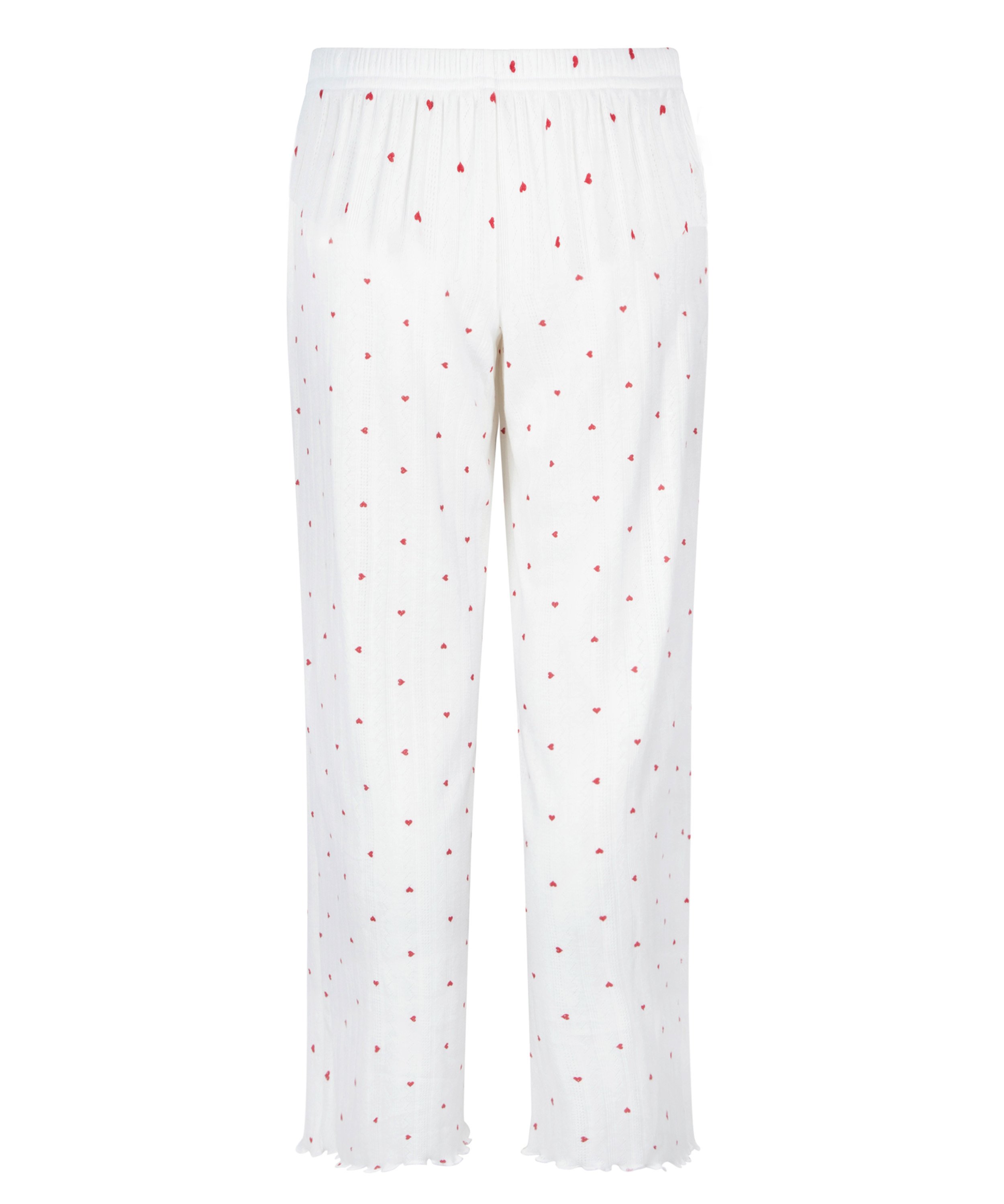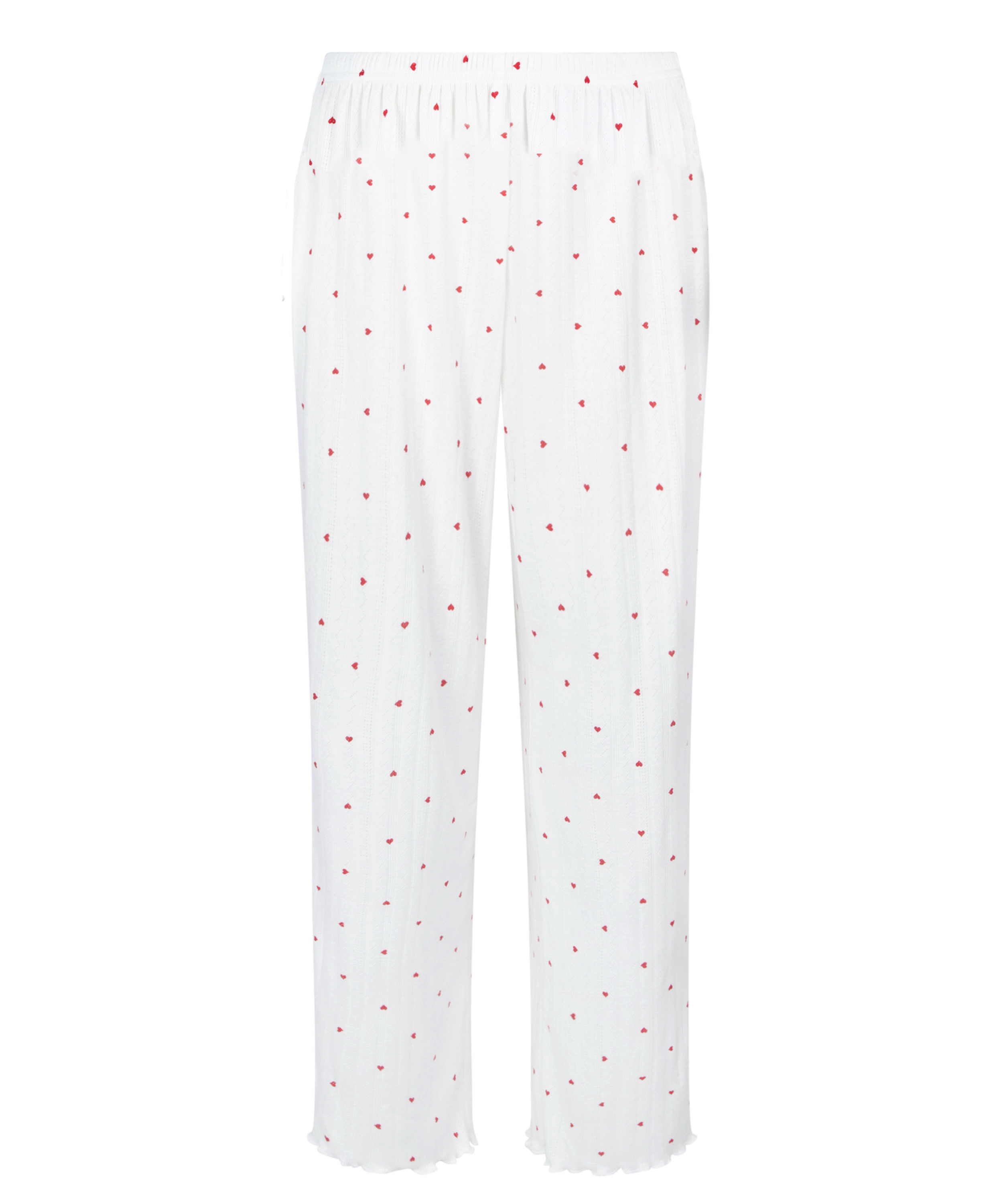 Poczuj najwyższy komfort w tych uroczych, długich spodniach piżamowych! Idealne na przytulną noc. Model wykonany z bardzo miękkiej tkaniny w piękny wzór z uroczymi, marszczonymi brzegami. Połącz je topem od piżamy z kompletu, aby stworzyć niezwykle wygodny zestaw!