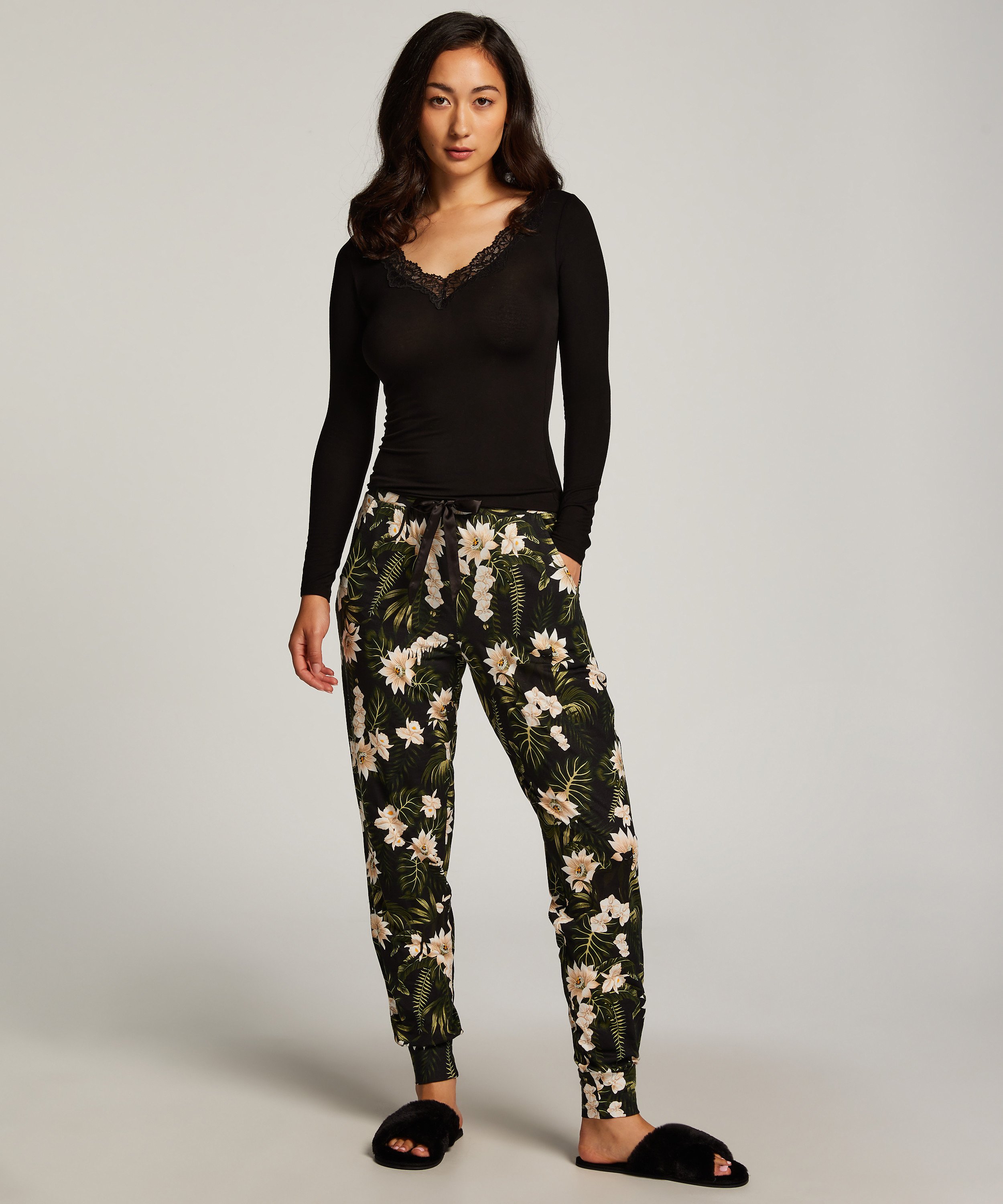 Rozkoszuj się idealnym krojem tych wygodnych spodni piżamowych z nadrukiem na całej powierzchni i kokardą z przodu.