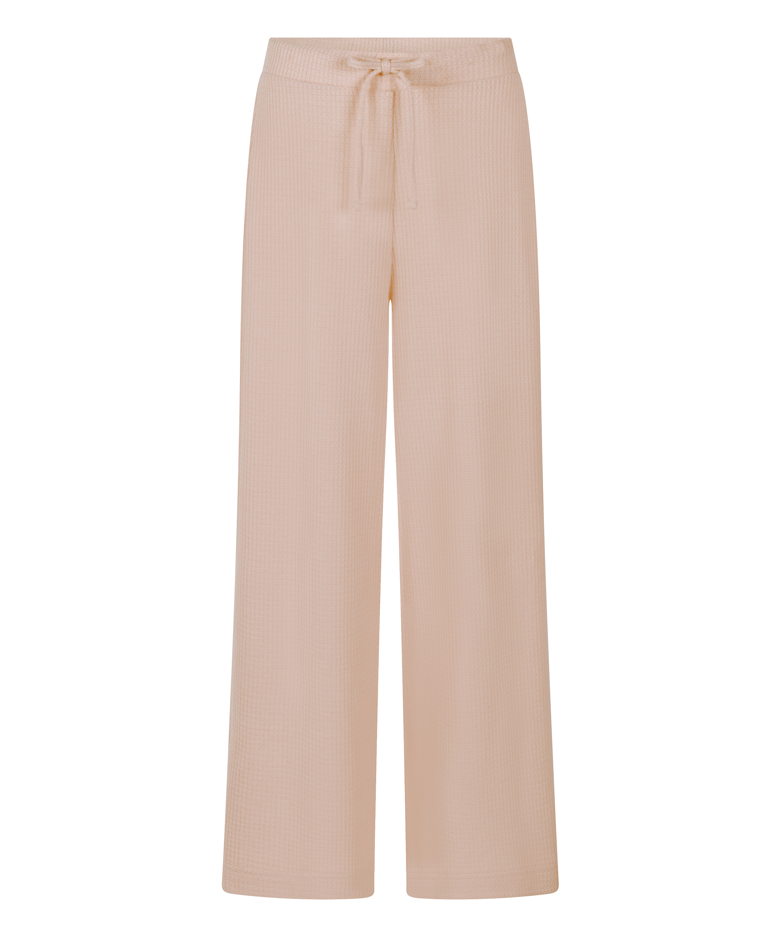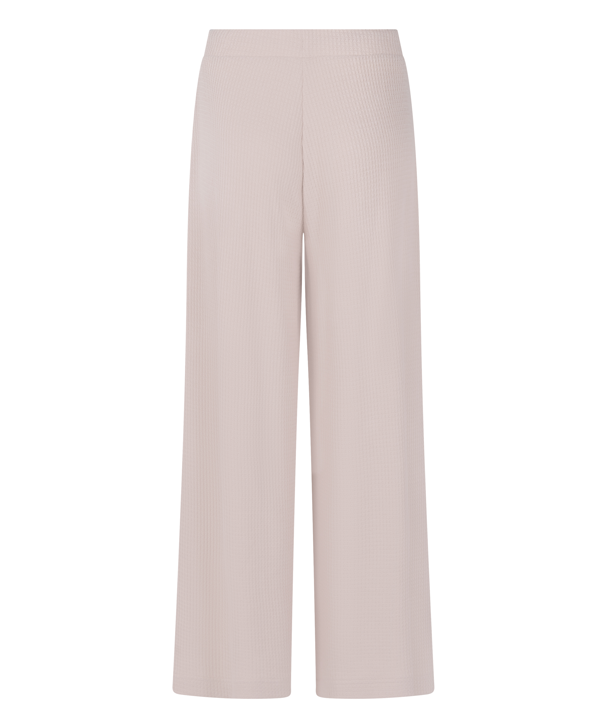 Te długie szerokie spodnie w strukturze waflowej łączą swobodny komfort z nieskomplikowanym stylem. Wykonane z miękkiej, oddychającej tkaniny, z elastycznym pasem i sznurkiem do regulacji dla dopasowanego, pewnego ułożenia. Szeroki krój tworzy pochlebiającą, zwiewną sylwetkę, idealną do noszenia w domu, na swobodne wyjścia lub do zestawienia z pasującą bluzką!