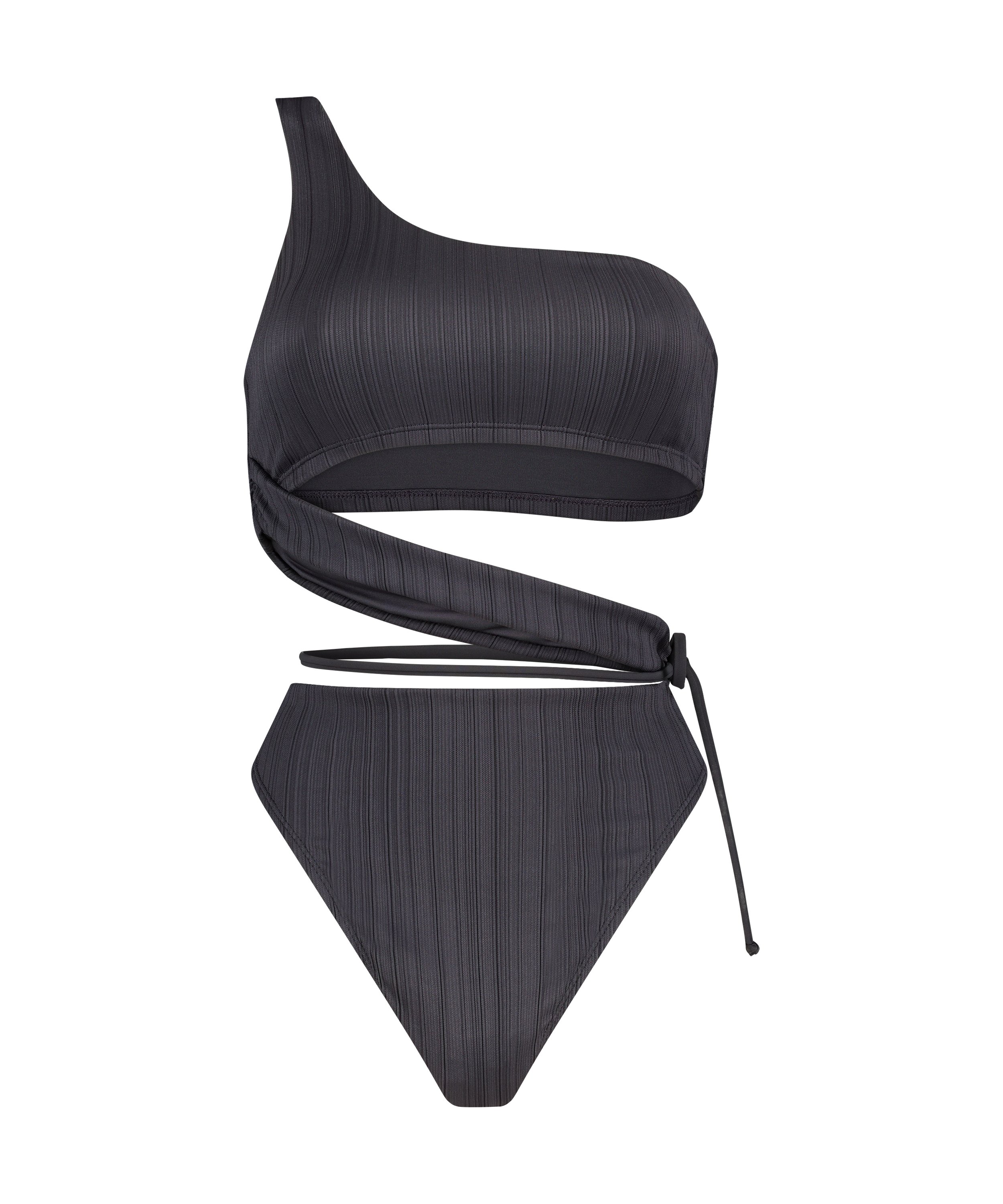 Paraduj po plaży w tym wyjątkowo kreatywnym stroju kąpielowym! Z wieloma wyciętymi detalami, które tworzą efekt zawinięcia w talii. Z jednym ramiączkiem i detalami w postaci paseczków. Oczywiście jest podwójnie podszyty. Połącz go z kimonem, aby dopełnić stylizację!