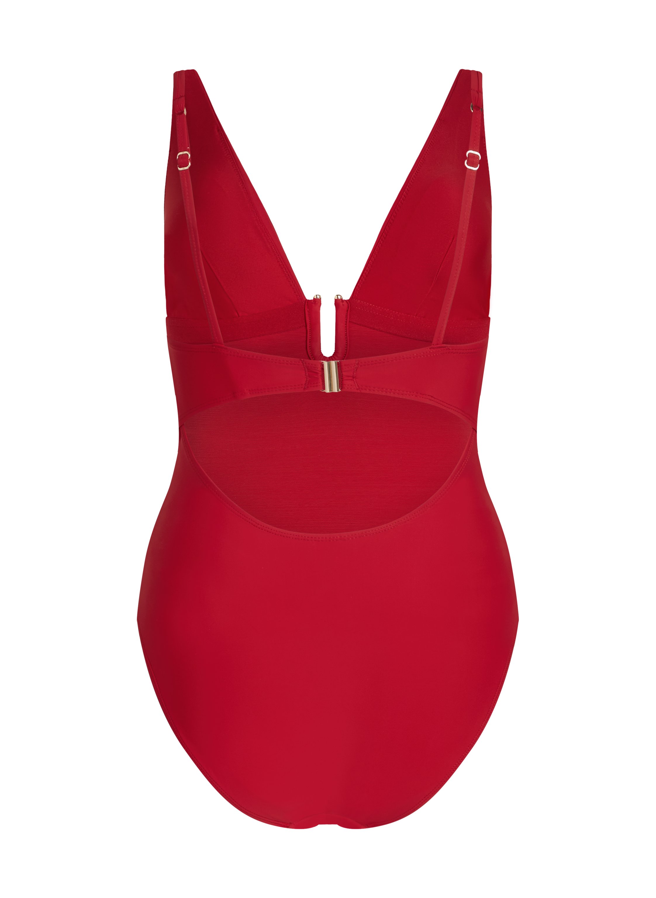 Ten elegancki jednoczęściowy kostium kąpielowy posiada głęboki dekolt z dekoracyjną metalową klamrą na środku. Regulowane ramiączka zapewniają komfort i idealne dopasowanie. Modelujący krój podkreśla sylwetkę i dodaje pewności siebie przy każdym założeniu. Połącz go z stylowym pareo lub oversize'owym kapeluszem przeciwsłonecznym, aby uzyskać zrelaksowany, a zarazem elegancki letni wygląd! Nasze modelujące stroje kąpielowe zostały zaprojektowane tak, aby podkreślać sylwetkę, zapewniając dopasowanie i uczucie stabilności. Zalecamy wybór o jeden rozmiar większy dla luźniejszego dopasowania.