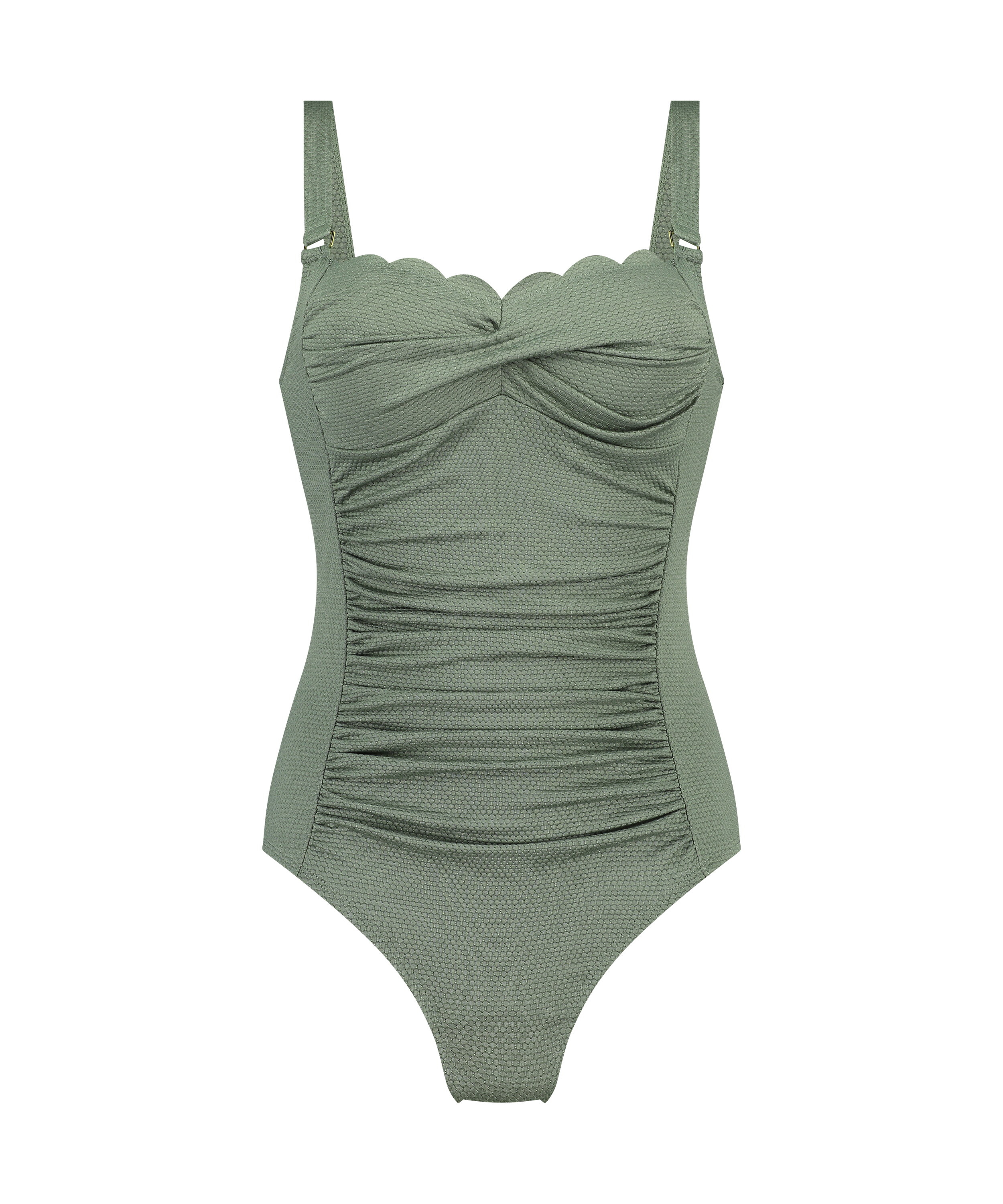 Poczuj się komfortowo i pewnie w tym stroju kąpielowym! Z bocznymi marszczeniami otulającymi ciało, podkreślającymi sylwetkę i podtrzymującymi biust miseczkami. Połącz go z naszym pareo, a będziesz wyglądać wspaniale!
