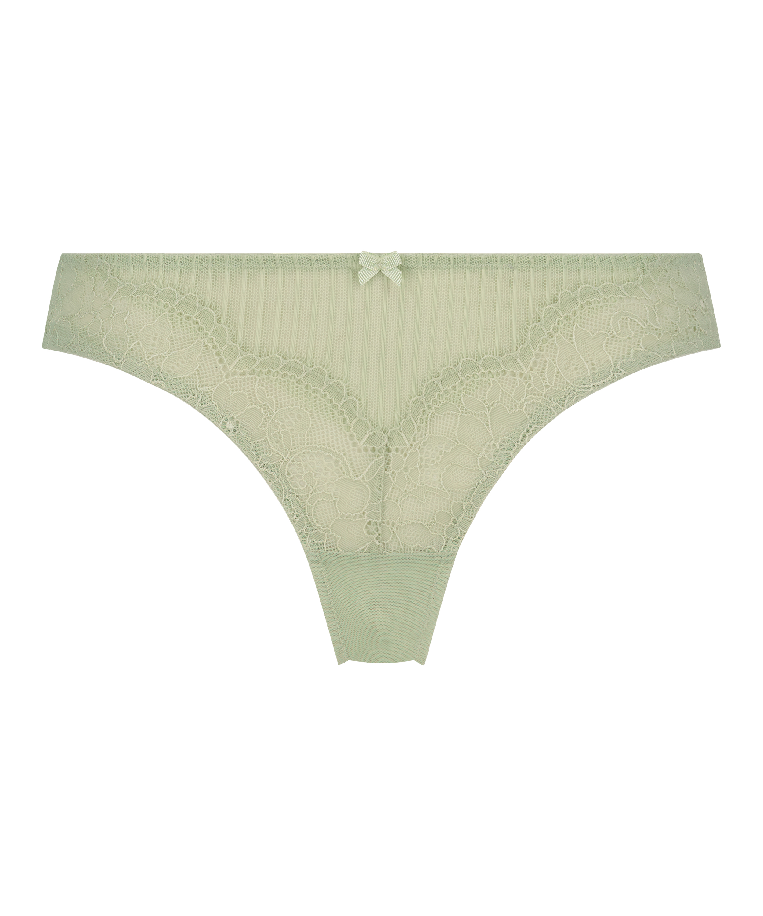 Kochamy koronki! Te stringi są naprawdę urocze dzięki kokardce z przodu i siateczkowym detalom. Połącz ją z dopasowanym biustonoszem, aby stworzyć idealny komplet!