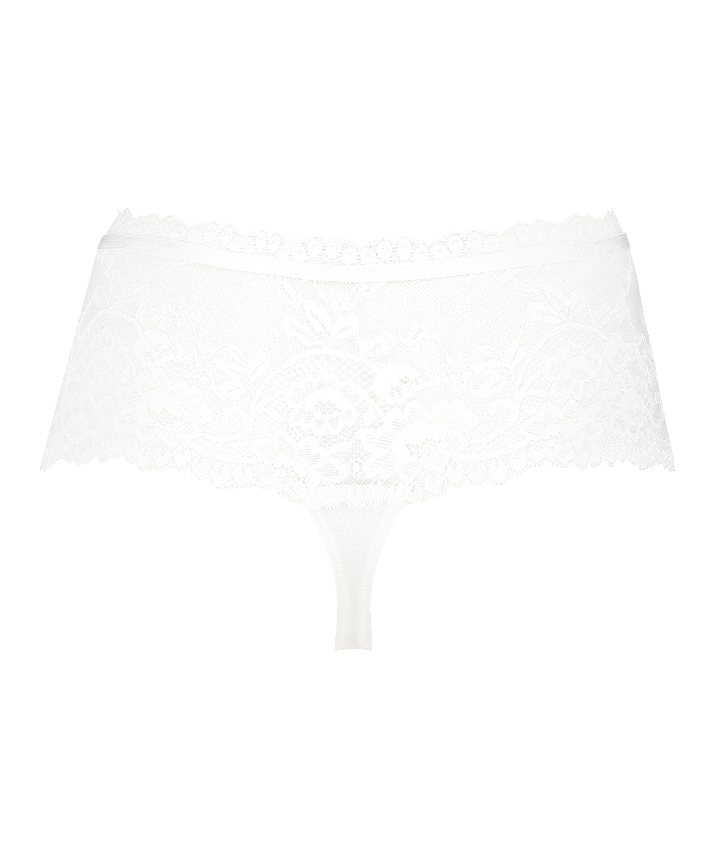 Poczuj się seksownie w tych bokserkach! Są w całości wykonane z koronki i mają małą kokardkę z przodu. Te bokserki leżą nieco wyżej, przez co są bardzo wygodne. Połącz te stringi z dopasowanym biustonoszem z naszej kolekcji!