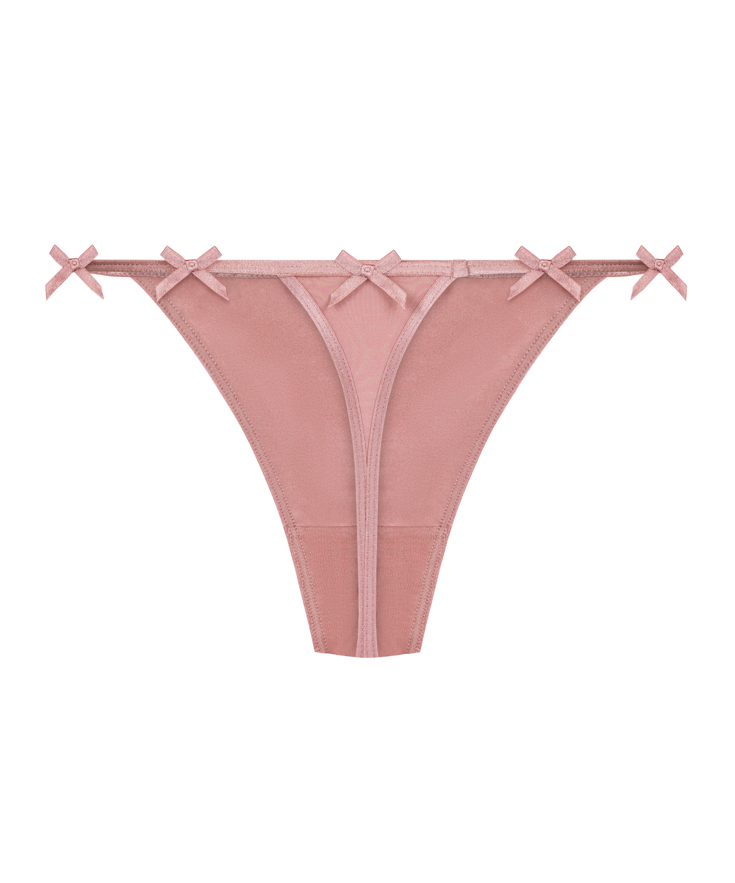 Te stringi łączą w sobie wygodę i uroczą odmianę klasycznego fasonu. Stringi te ozdobione są delikatnymi kokardkami z przodu, co nadaje im fantazyjnego, romantycznego charakteru. Miękka, elastyczna tkanina gwarantuje wygodne dopasowanie, a minimalne zakrycie dodaje śmiałego wykończenia. Połącz z ulubionym biustonoszem, aby uzyskać kompletny look.