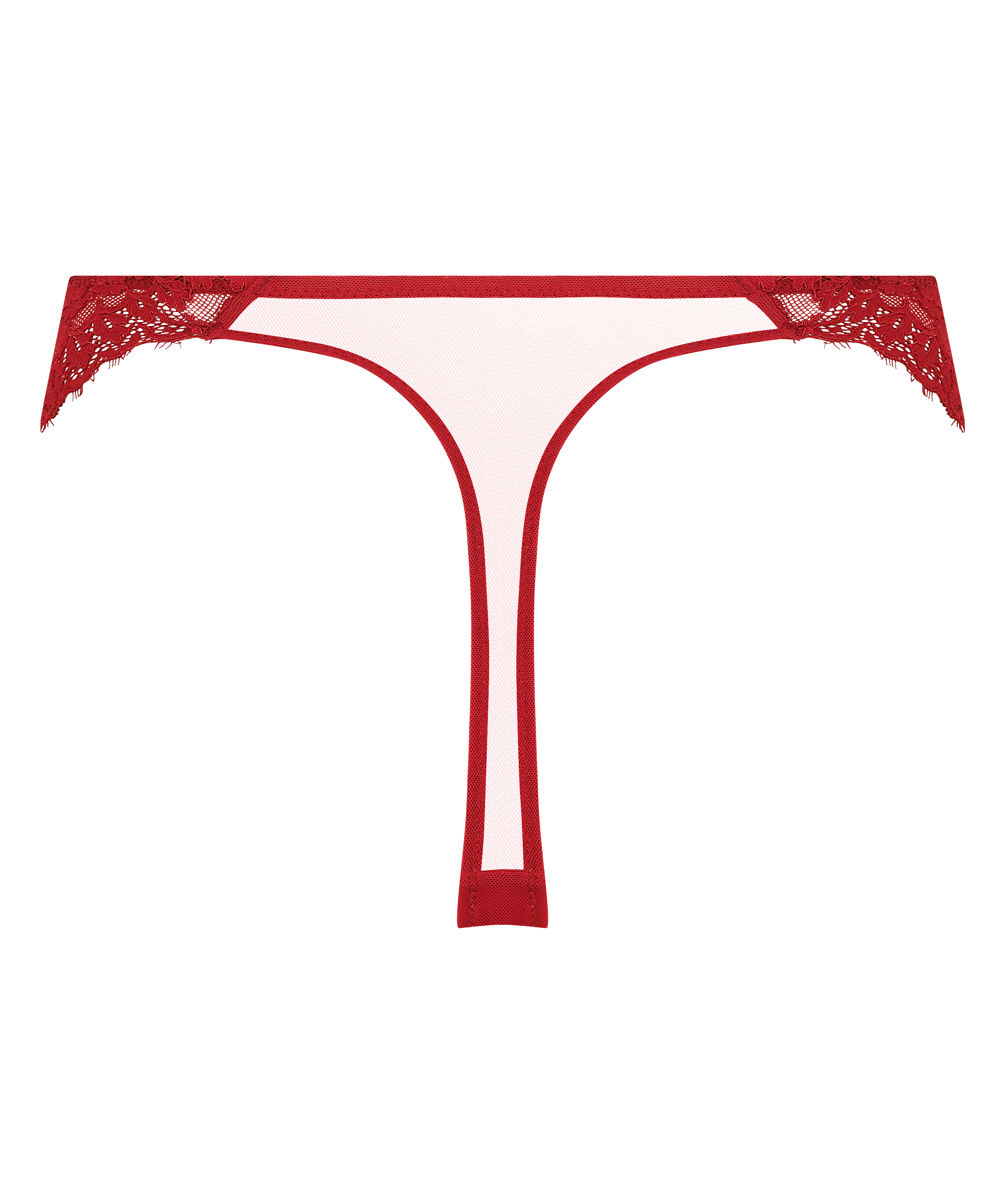 Te modne stringi mają przezroczysty koronkowy przód i siateczkowy tył. Mały guzik na środku przodu stanowi uzupełnienie całości.