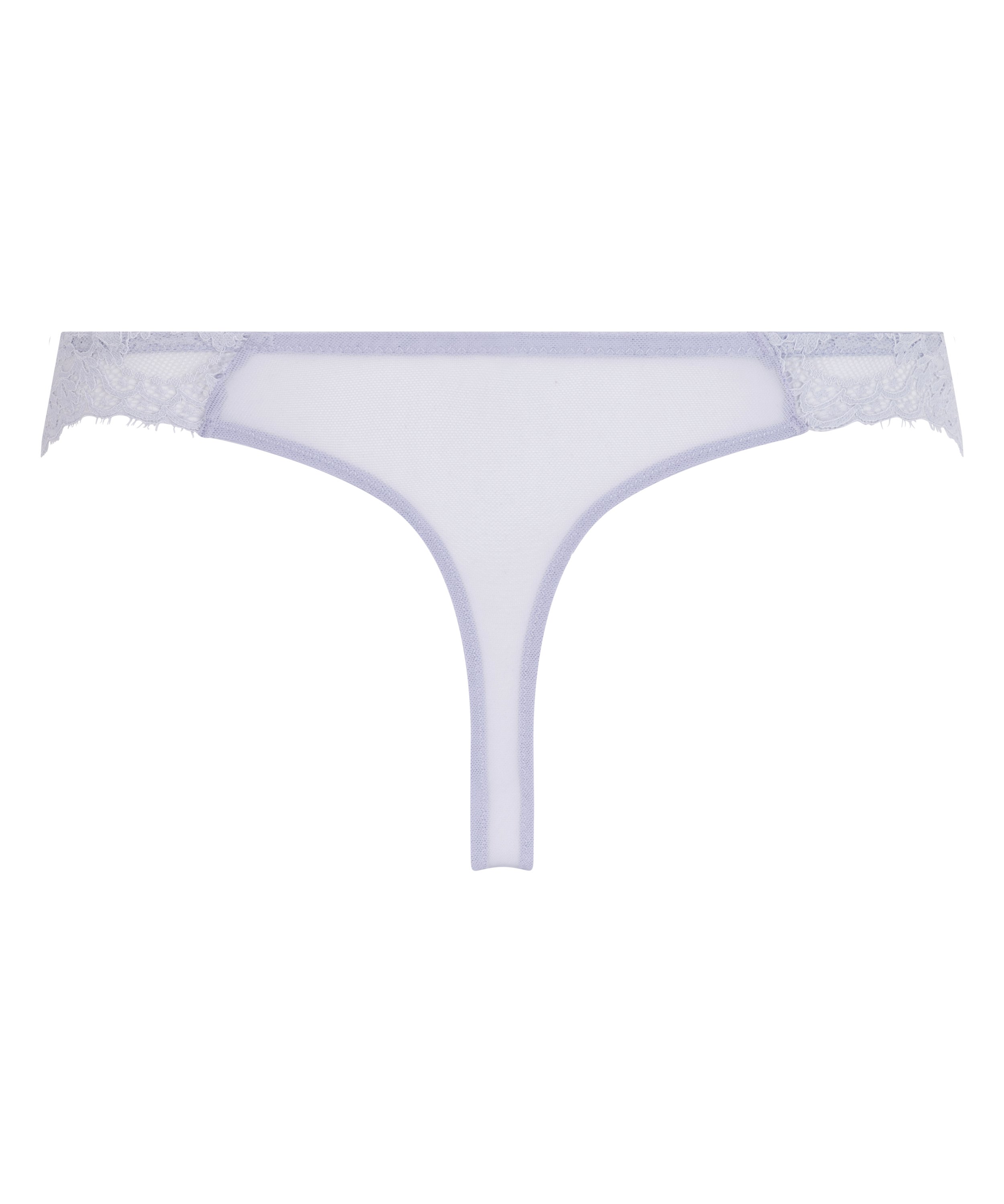 Te modne stringi mają przezroczysty koronkowy przód i siateczkowy tył. Mały guzik na środku przodu stanowi uzupełnienie całości.