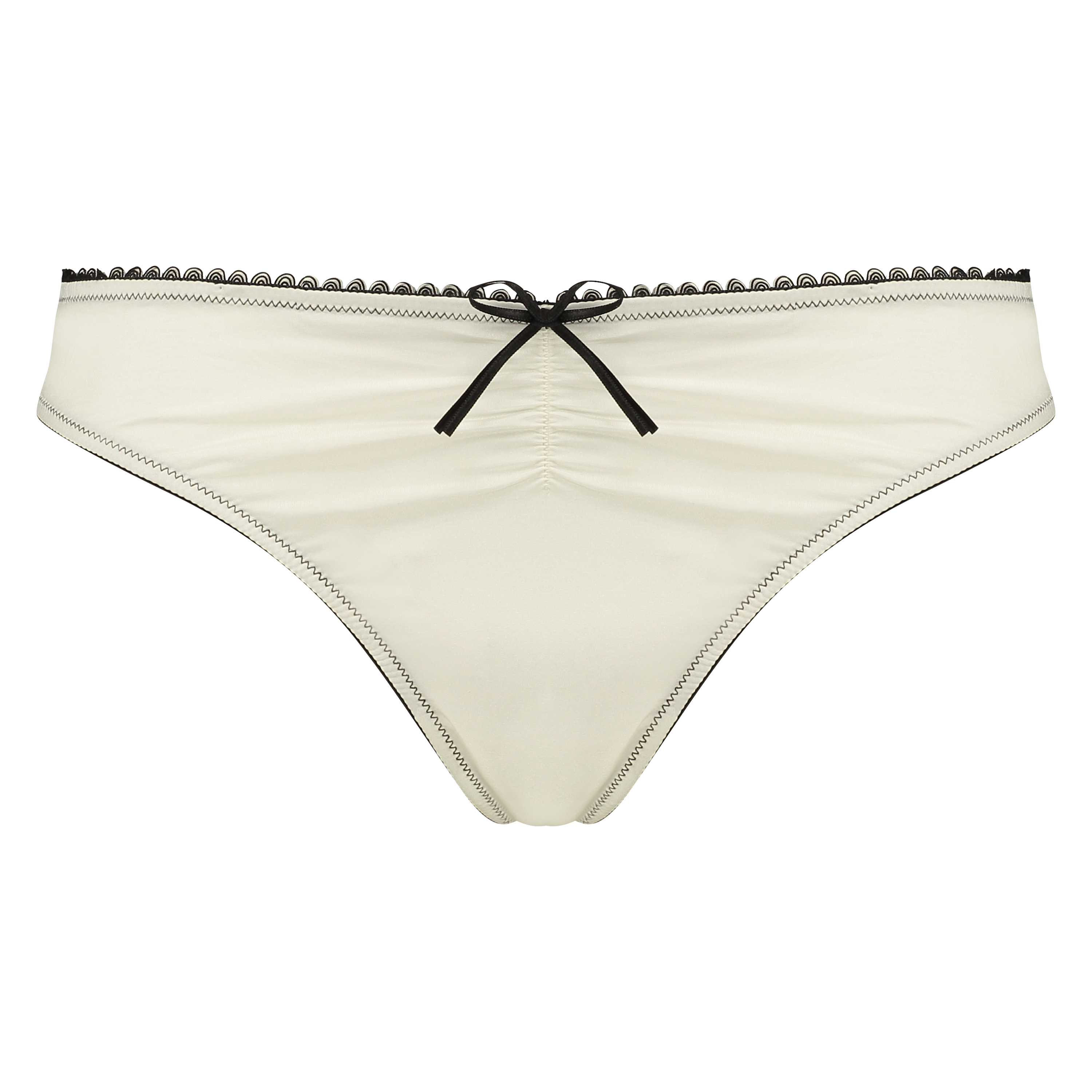 Postaw na stylowy wygląd ze stringami wykonanymi z błyszczącego materiału z plisowaniem z przodu. Słodka kokardka z przodu stanowi stylowe wykończenie.