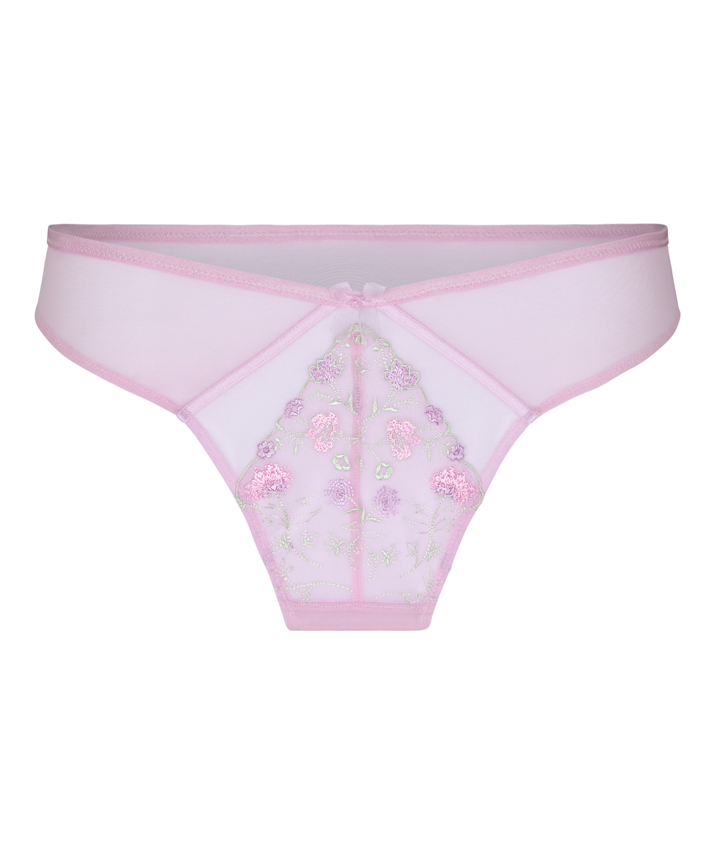 Dodaj odrobinę delikatnego uroku do swojej kolekcji bielizny dzięki tym pięknie wykonanym stringom, ozdobione haftowanymi kwiatami, miękką siateczką i słodką kokardką z przodu. Kwiatowy haft tworzy wyrafinowany, kobiecy wygląd, a mała kokardka z przodu dodaje subtelny, figlarny akcent. Połącz z pasującym biustonoszem, aby uzyskać kompletny look.