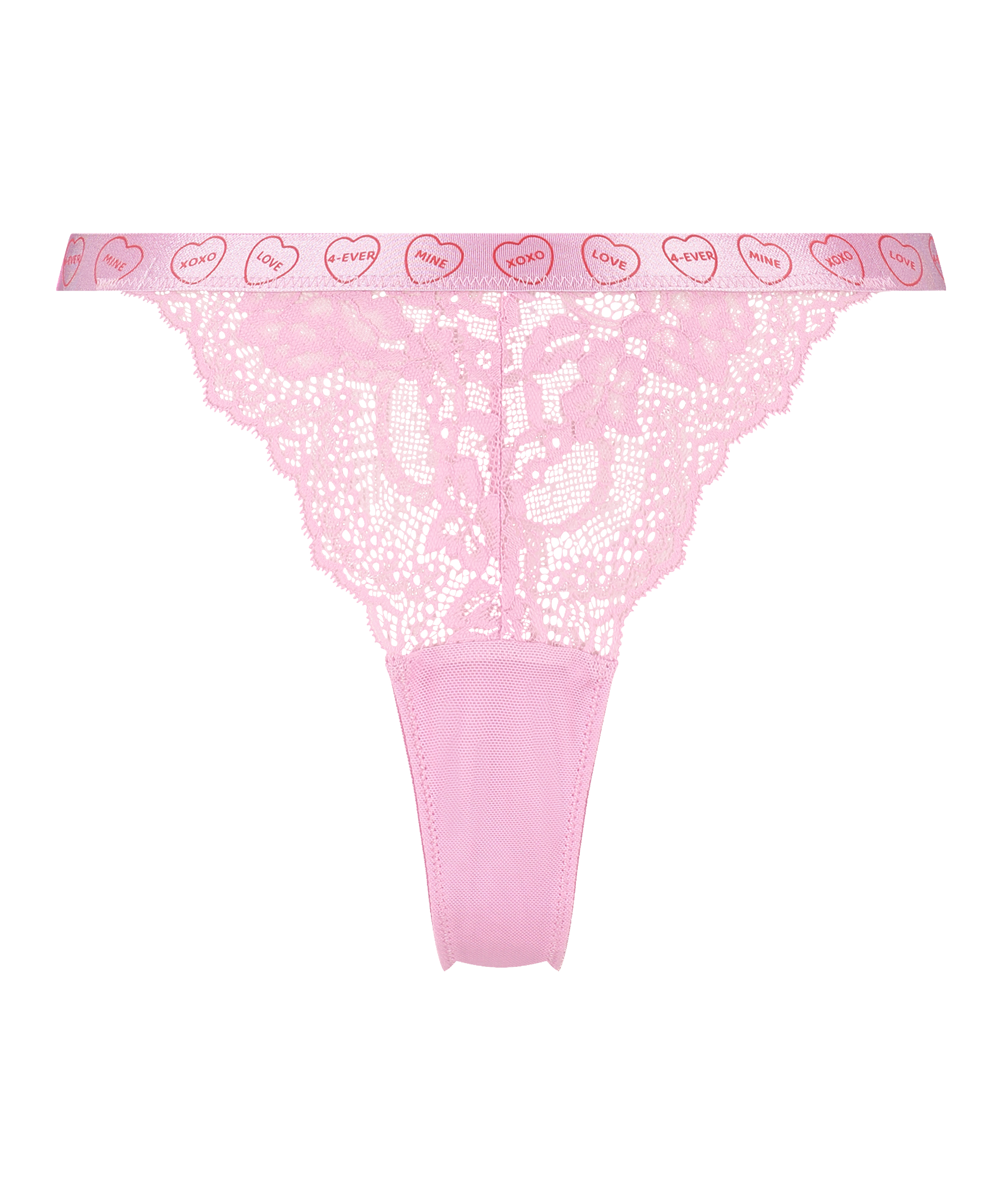 Spójrz na te seksowne stringi! Koronka tworzy półtransparentny wygląd. Mają urocze wykończenia. Połącz z biustonoszem z kompletu.