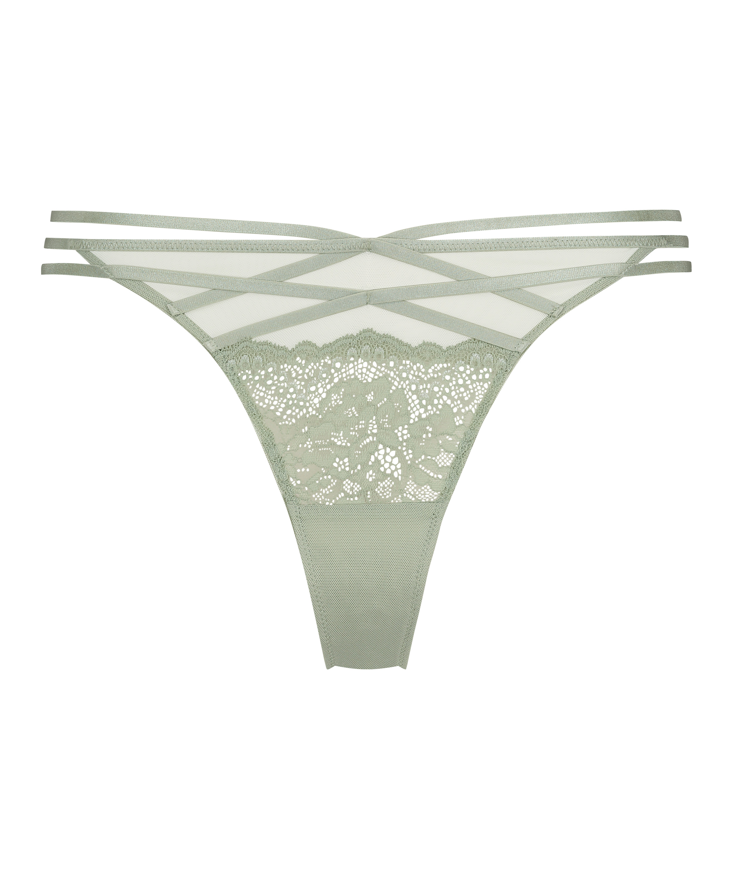 Podkreśl swoje krągłości w tych zmysłowych stringach z wysokim stanem! Stringi mają koronkowe detale z przodu i siateczkę z tyłu. Paski wokół bioder zapewniają niezwykle seksowne dopasowanie. Połącz je z jednym z naszych najpopularniejszych dodatków!