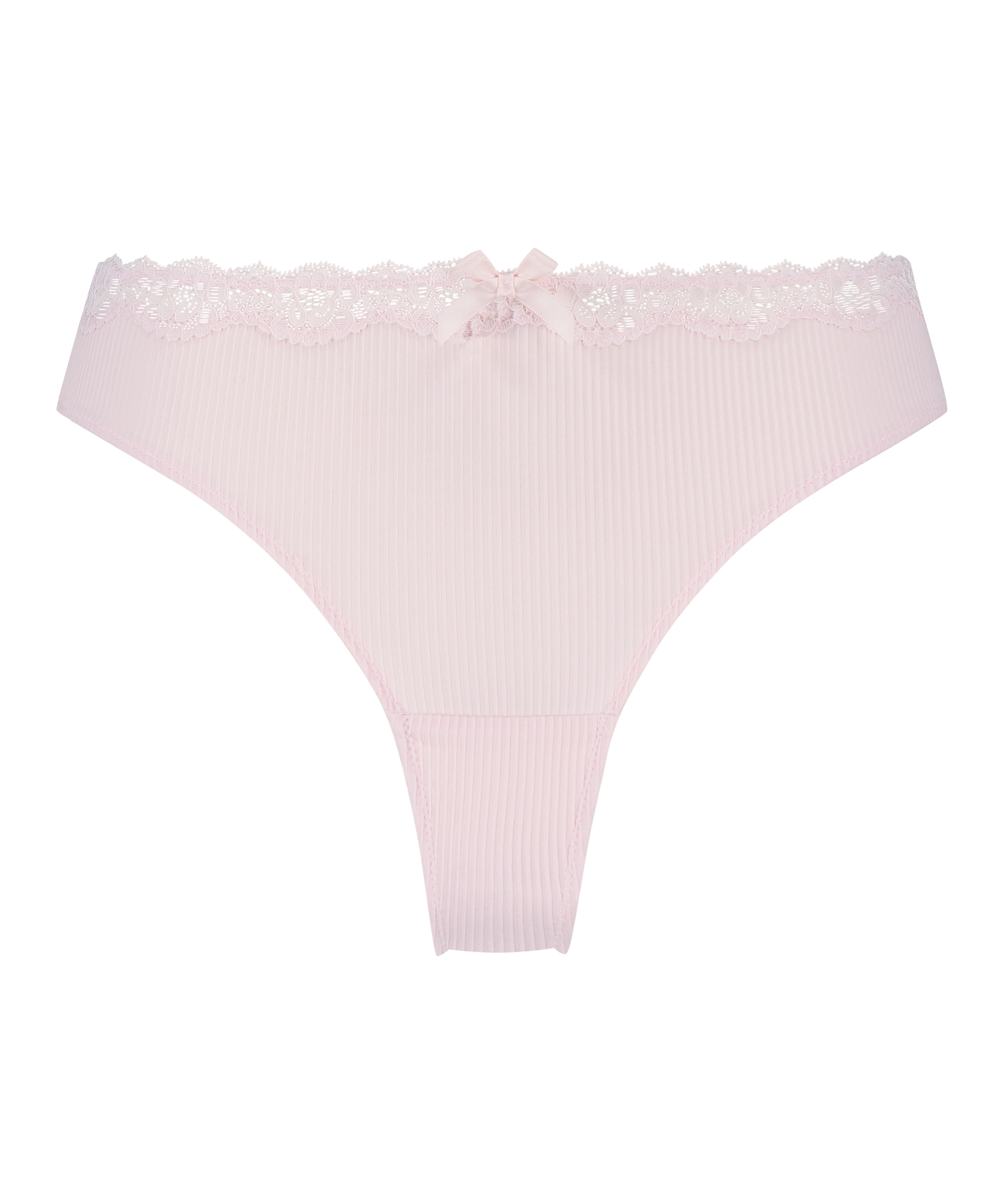 Stringi wykonane są ze sztruksu i wykończone koronkową lamówką u góry. Kokardka na środku stanowi piękny dodatkowy akcent! W połączeniu z pasującym biustonoszem otrzymasz kompletny zestaw bielizny!