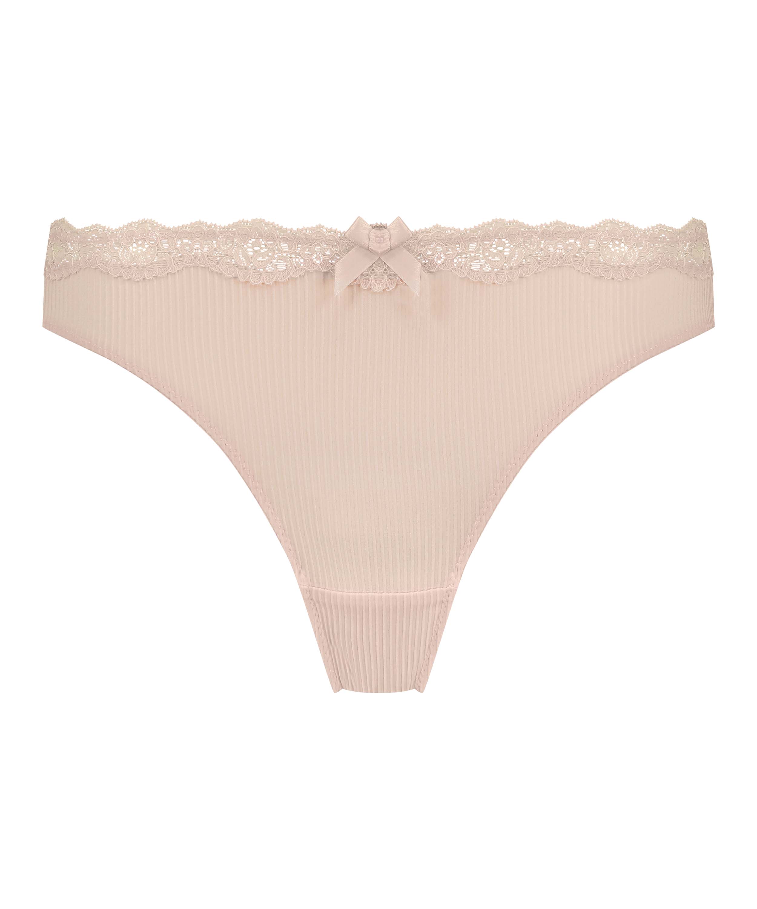 Stringi wykonane są ze sztruksu i wykończone koronkową lamówką u góry. Kokardka na środku stanowi piękny dodatkowy akcent! W połączeniu z pasującym biustonoszem otrzymasz kompletny zestaw bielizny!