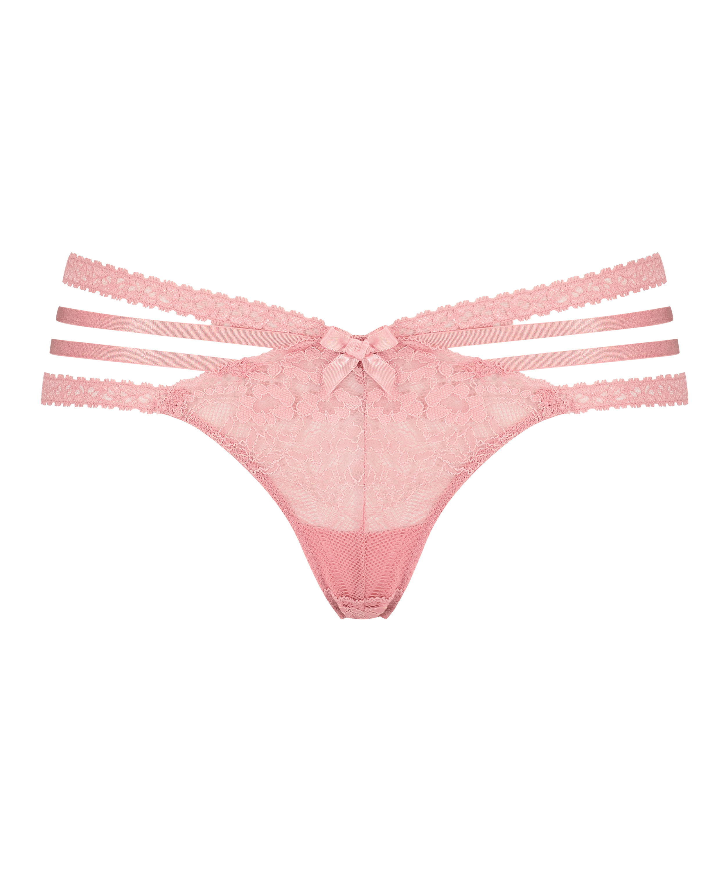Poczuj się super seksownie w tych stringach! Są wykonane głównie z koronki, z ładną kokardką z przodu, a paseczki nadają im dodatkową ozdobę. Połącz je ze swoimi ulubionymi dodatkami.