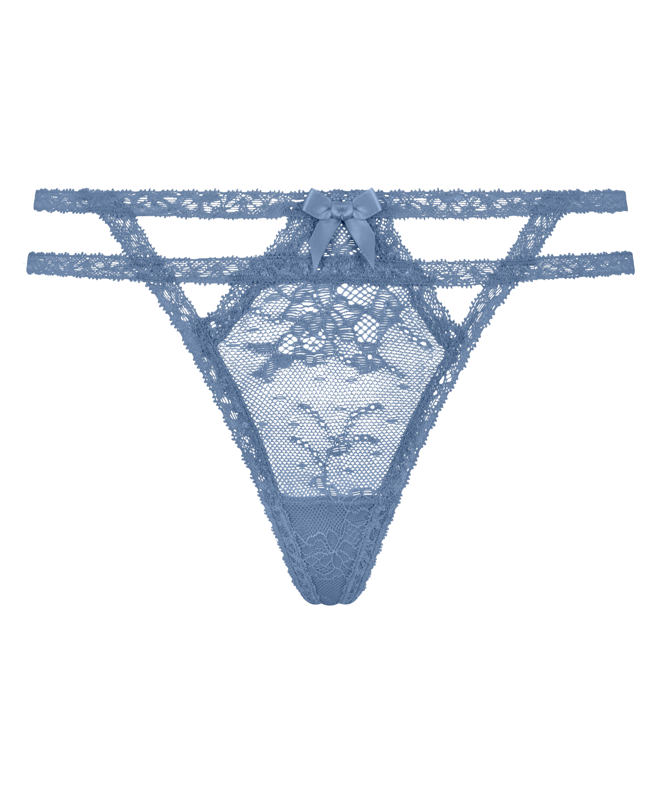 Uzupełnij swoją kolekcję bielizny o nasze stringi. Ten wykwintny element garderoby charakteryzuje się koronką na całej powierzchni, która pięknie modeluje Twoje kształty, zapewniając zmysłowy, a zarazem elegancki wygląd. Odważne detale w postaci pasków dodają nowoczesnego charakteru, a słodka kokardka z przodu stanowi zabawny i kobiecy akcent.