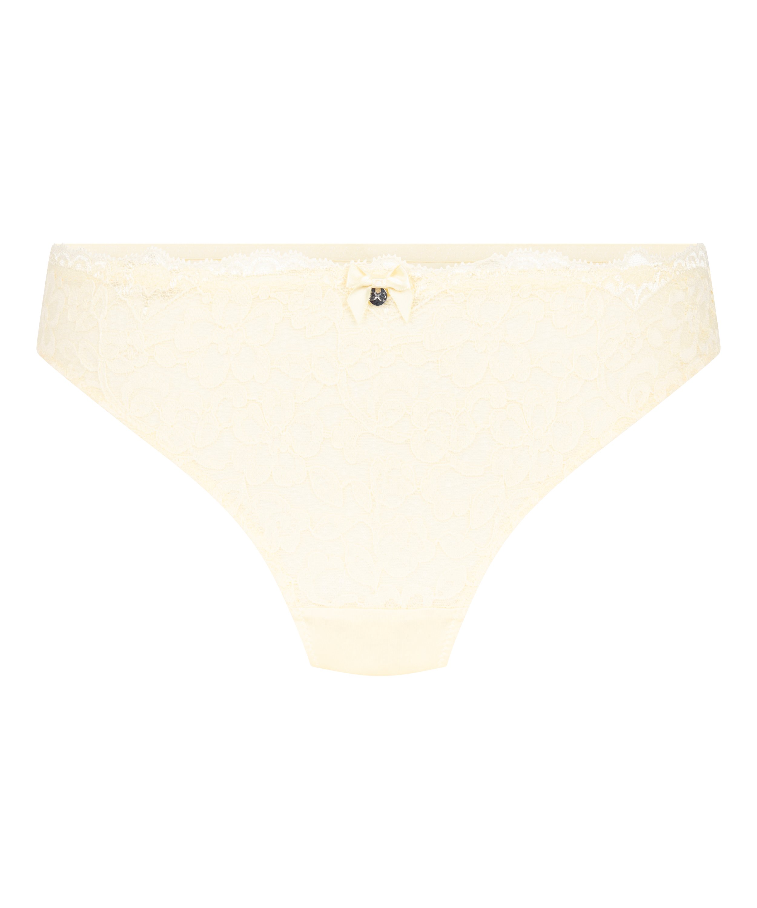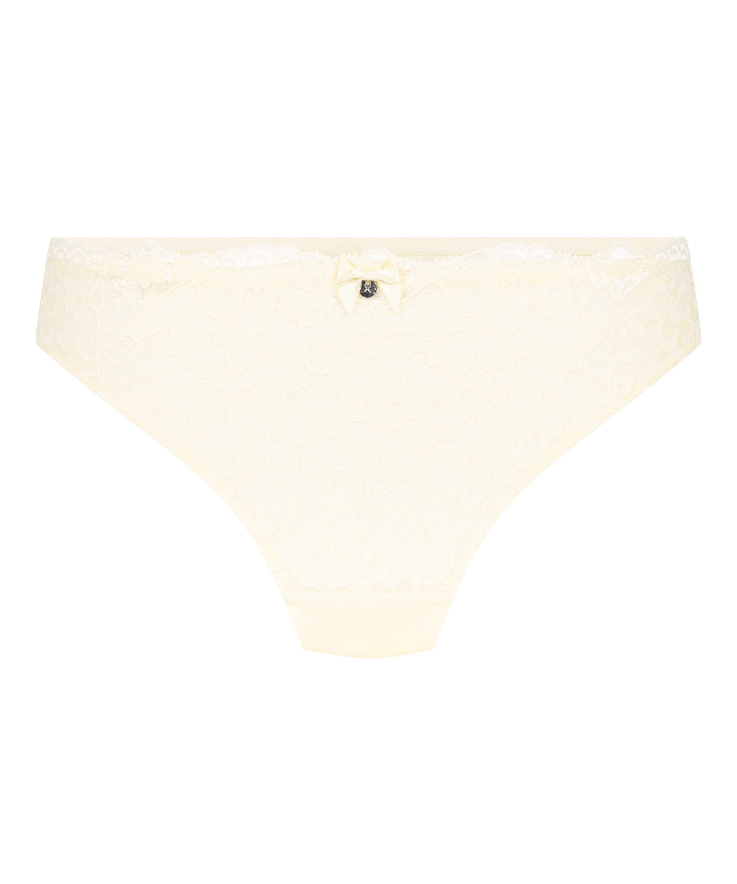 W tych stringach będziesz wyglądać uroczo! Całość ozdobiona jest koronką z kwiatowym wzorem i wykończona małą kokardką pośrodku. Połącz z pasującym biustonoszem, aby uzyskać pełny wygląd.