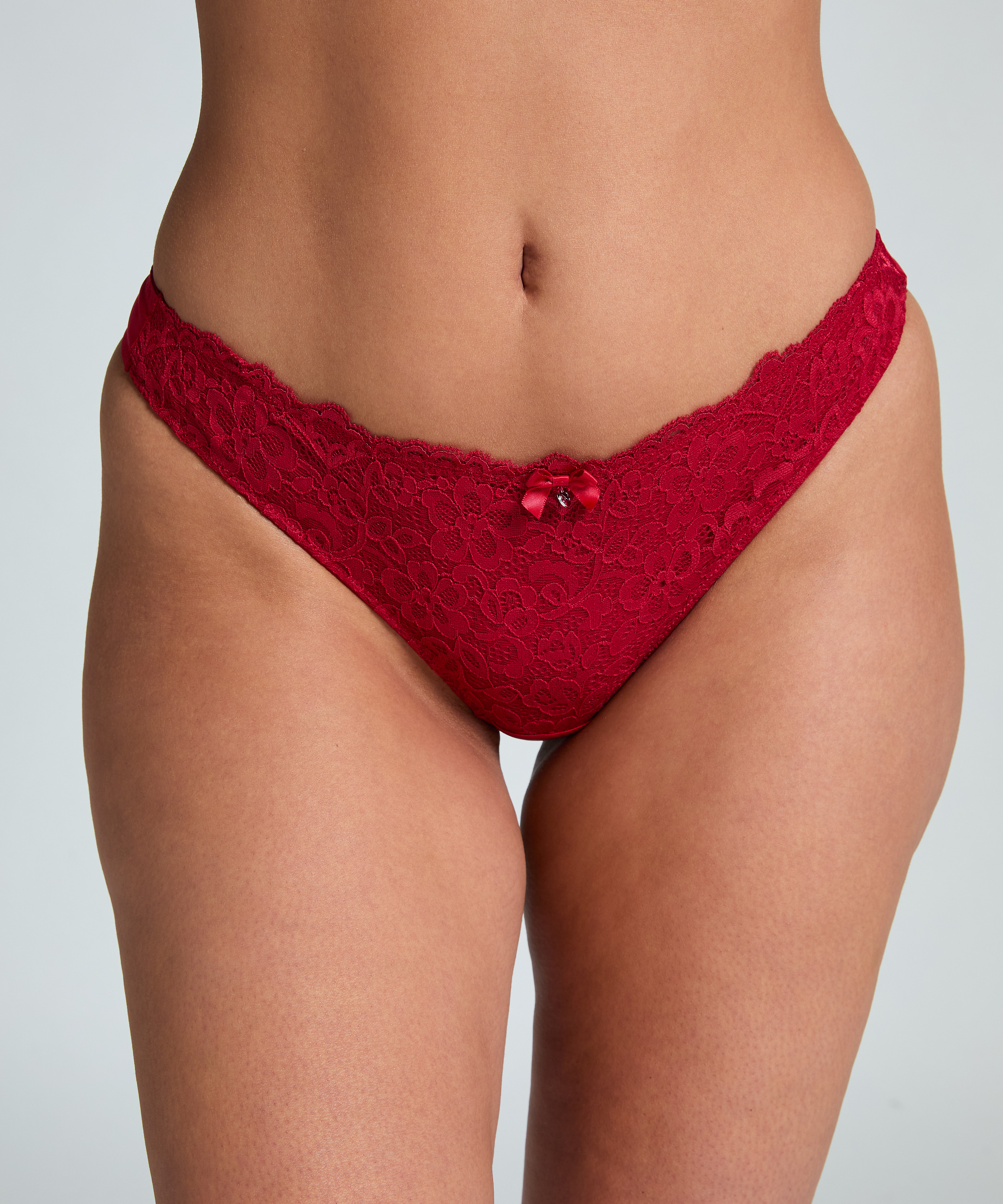 W tych stringach będziesz wyglądać uroczo! Całość ozdobiona jest koronką z kwiatowym wzorem i wykończona małą kokardką pośrodku. Połącz z pasującym biustonoszem, aby uzyskać pełny wygląd.