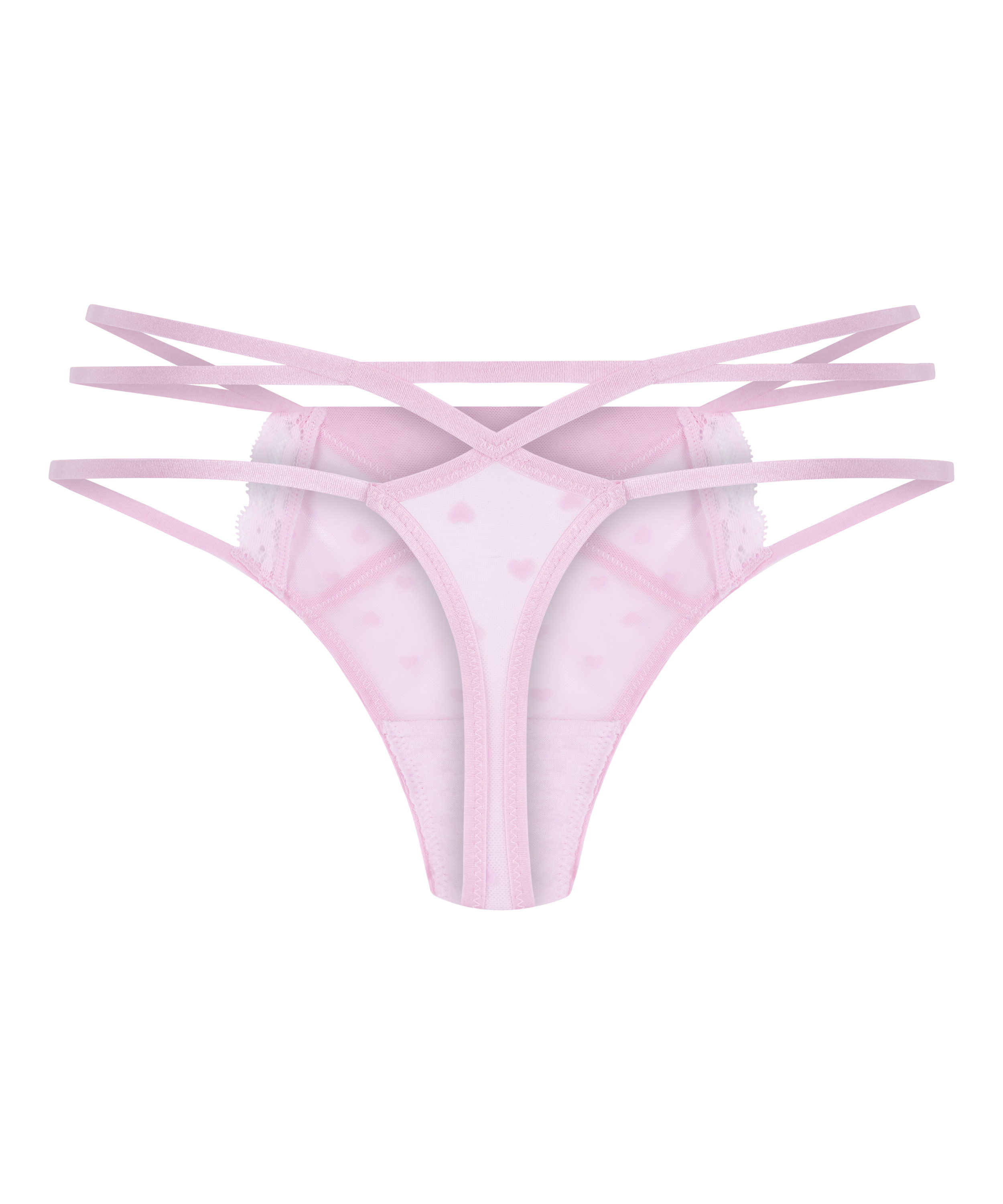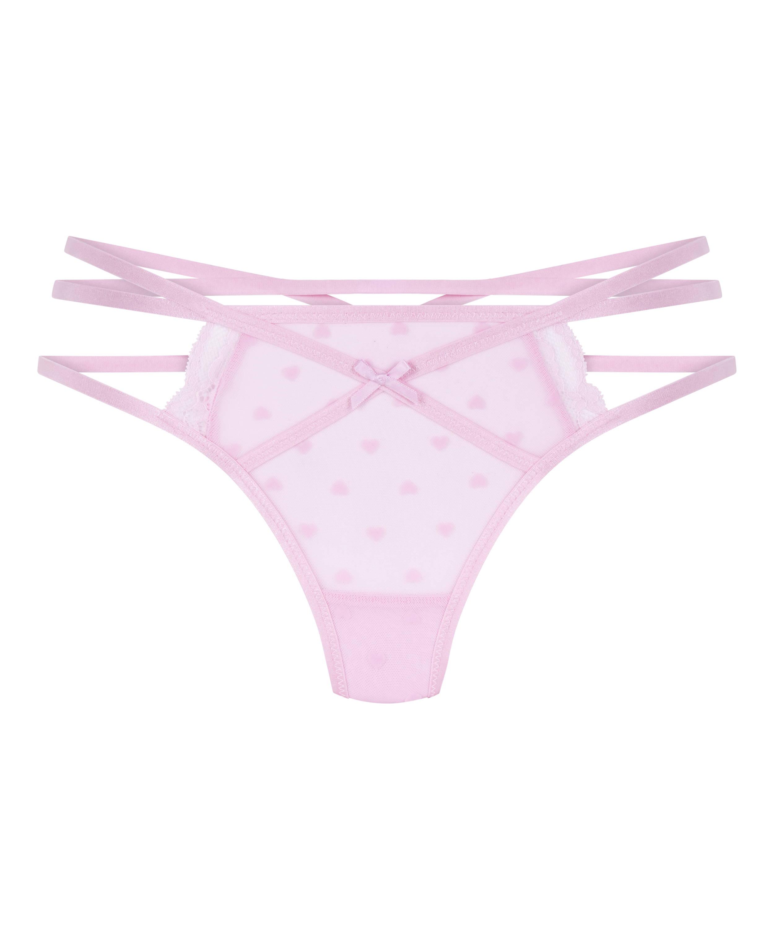 Te piękne stringi sprawią, że poczujesz się seksownie! Model wykonany w dużej części z koronki, z uroczą kokardką z przodu i ładnymi detalami w postaci pasków. Połącz je z pasującymi produktami, aby stworzyć uroczy zestaw!