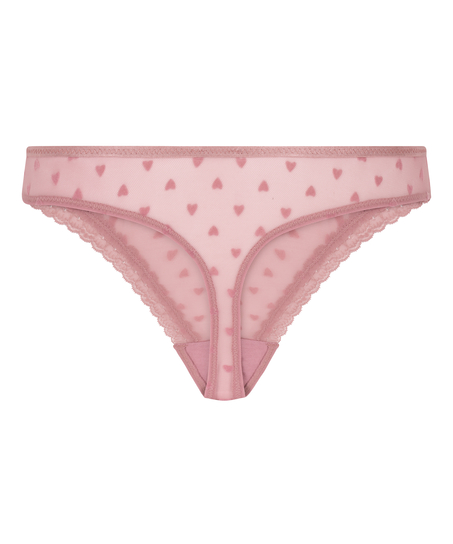 Poczuj się komfortowo w tych pięknych stringach. Stringi mają koronkowy brzeg i detale w postaci aksamitnych serduszek. Połącz ze swoim ulubionym biustonoszem, aby skompletować zestaw.