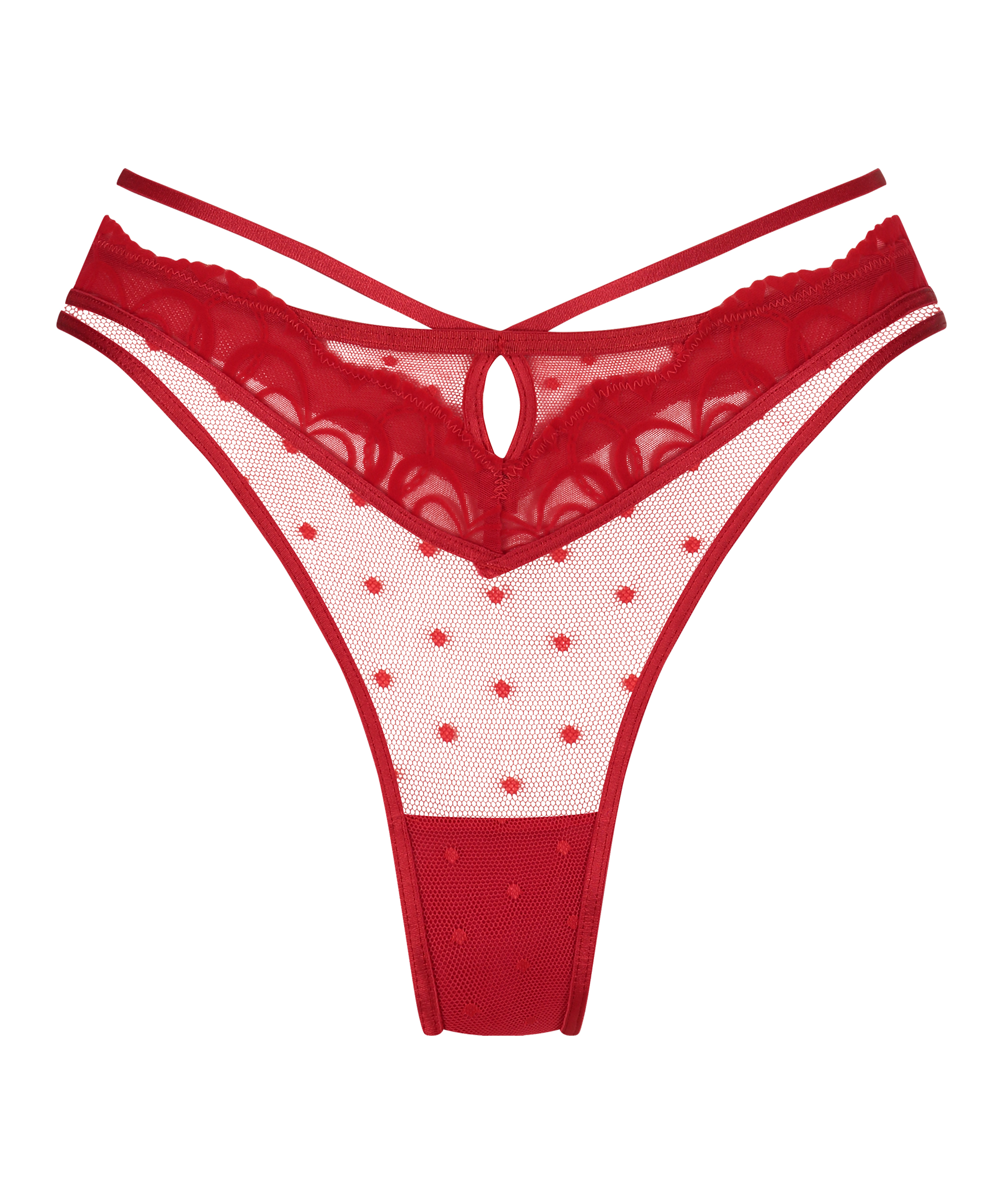 Nie przegap tych pięknych stringów! Z paseczkami i wycięciami. Półprzezroczysty wygląd tworzy seksowny klimat. Połącz je z biustonoszem bralette z kompletu.