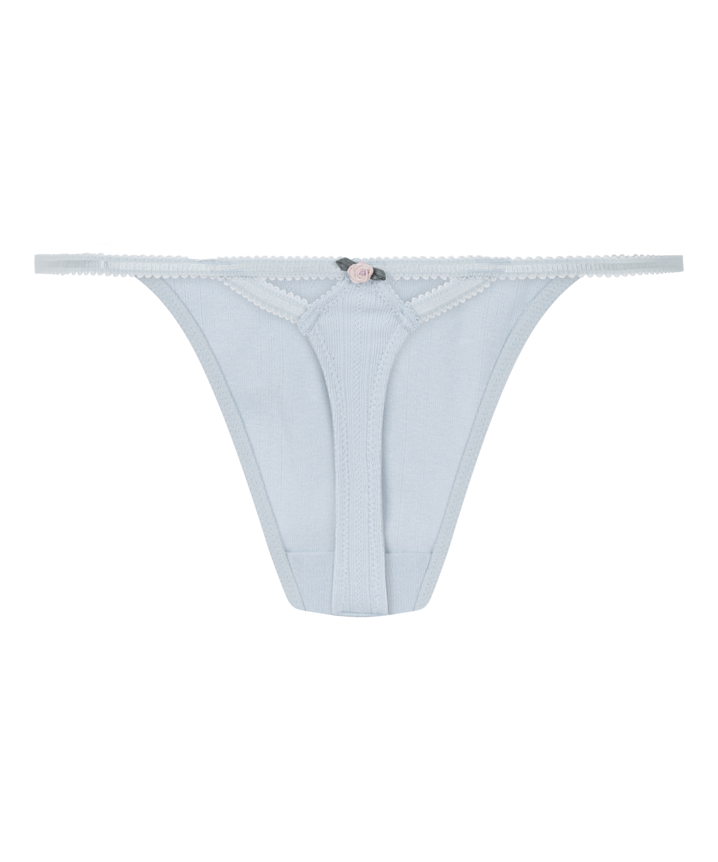 Te stringi łączą w sobie romantyczność i nowoczesność. Wykonane z tkaniny pointelle o teksturowanym wykończeniu, łączą całodzienny komfort z eleganckim stylem. Wysoko wycięte nogawki wydłużają sylwetkę, a detal w postaci róży z przodu dodaje im słodkiego, kobiecego akcentu.
