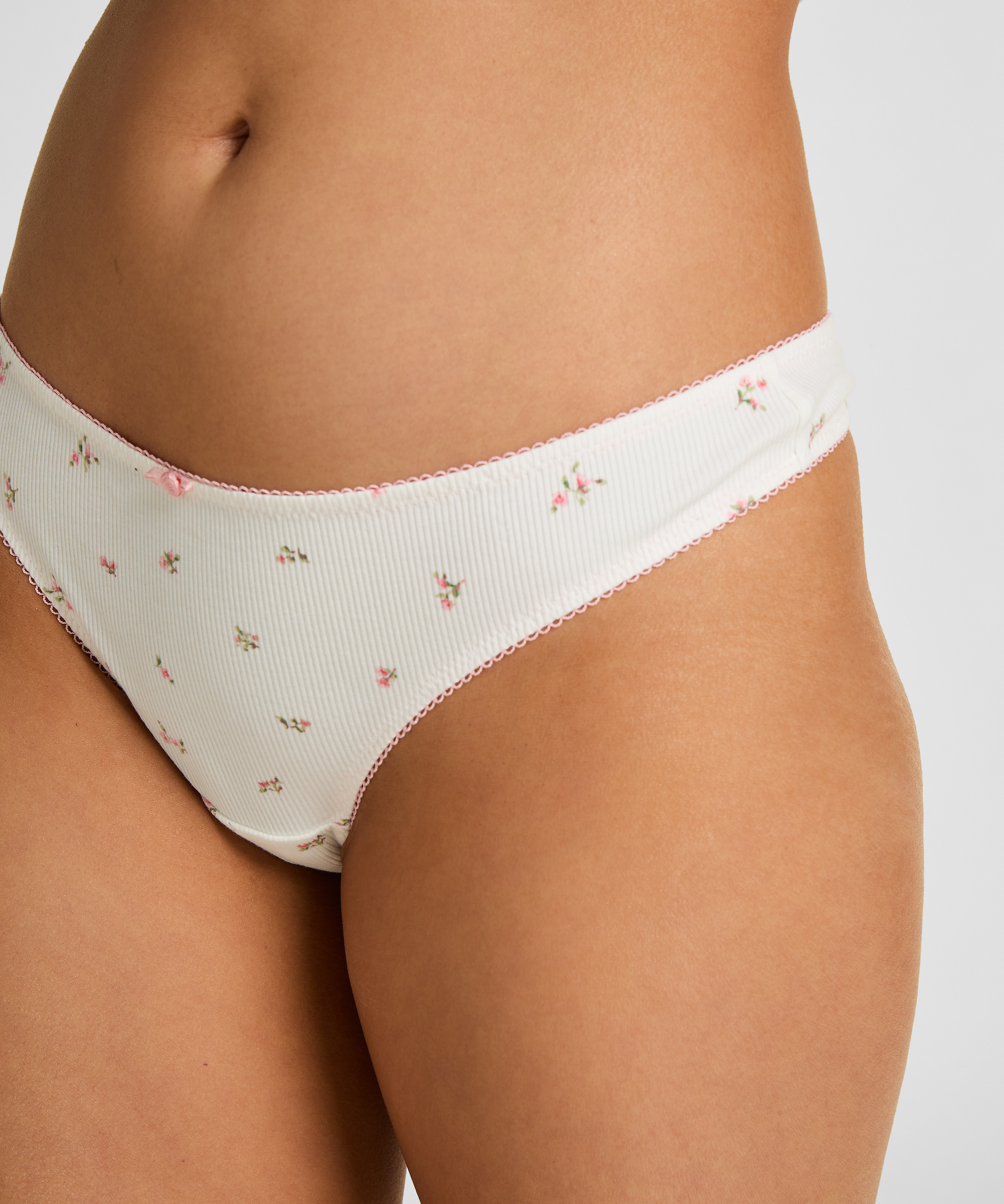 Te prążkowane bawełniane stringi to twój nowy, niezbędny element garderoby na co dzień. Zaprojektowano je z myślą o miękkim i elastycznym kroju, a ich delikatnie falowane brzegi dodają im indywidualnego charakteru. Oddychający materiał zapewnia chłód, jest gwarancją komfortu i odrobiny eleganckiego stylu.