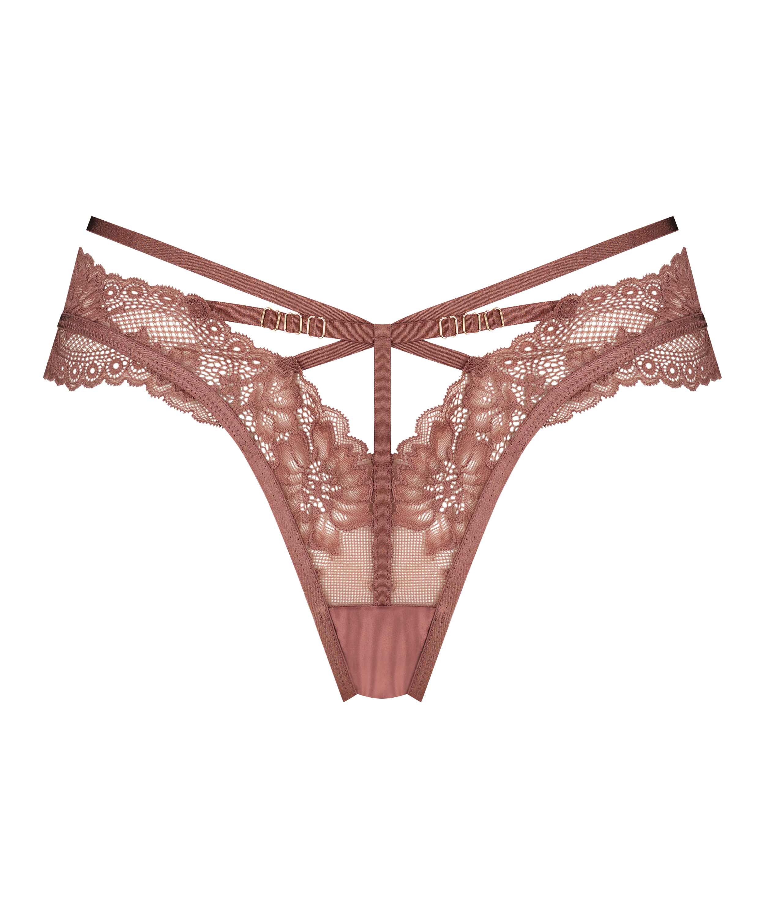 Nie przegap tych seksownych stringów! Całość dopełnia koronkowe zdobienie z przodu i z tyłu, z mnóstwem pasiastych detali i złotych elementów. Uzupełnij zestaw o pasujący biustonosz!