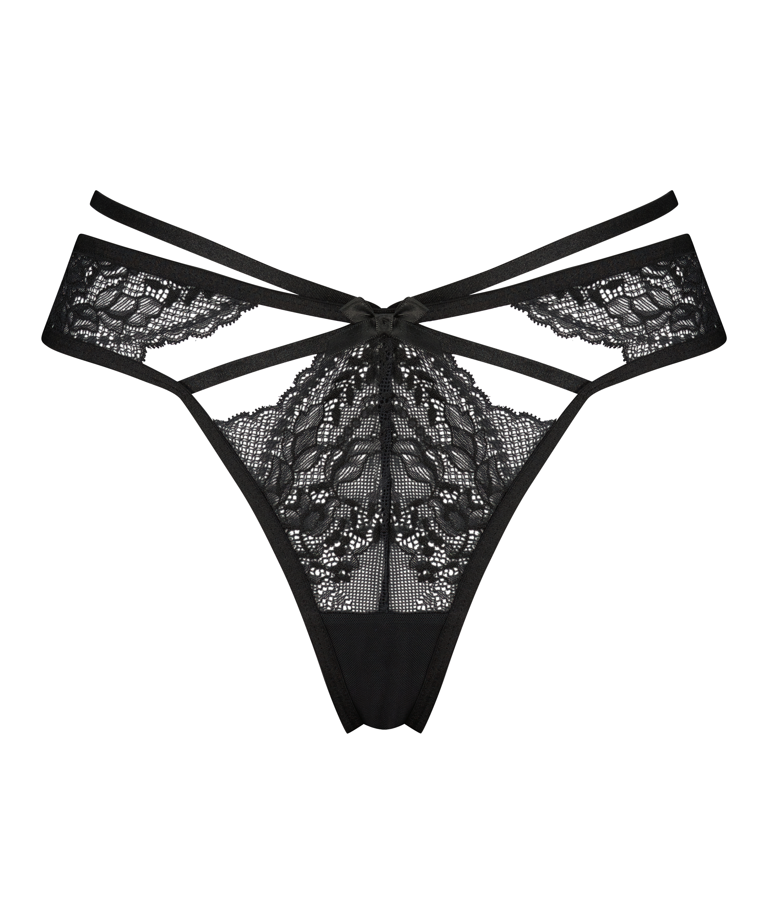 W tych stringach nikt Ci się nie oprze! Stringi posiadają dużo koronki i wiele wycięć. Mają detale w postaci pasków. Zestaw je z pasującym biustonoszem.