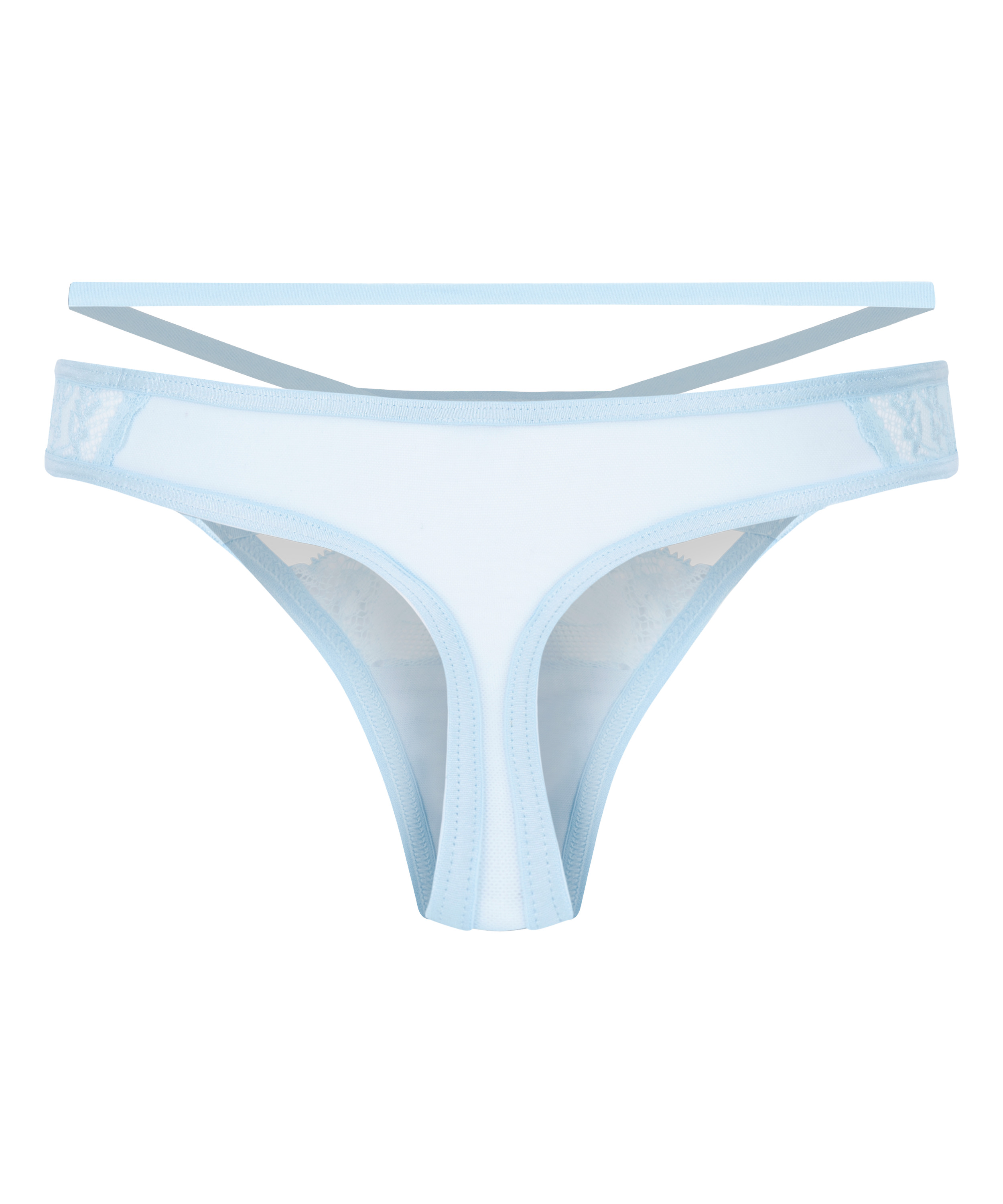 W tych stringach nikt Ci się nie oprze! Stringi posiadają dużo koronki i wiele wycięć. Mają detale w postaci pasków. Zestaw je z pasującym biustonoszem.