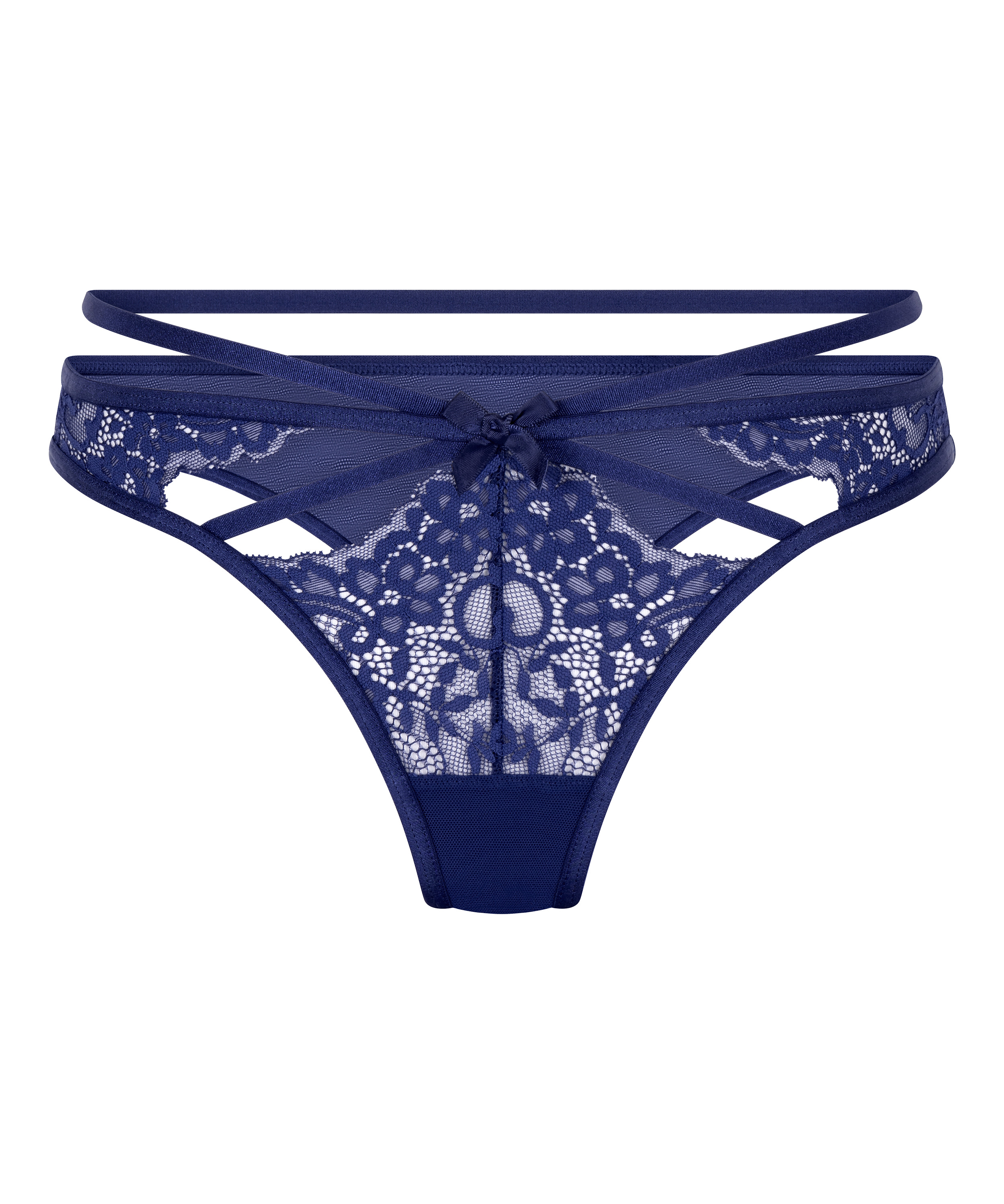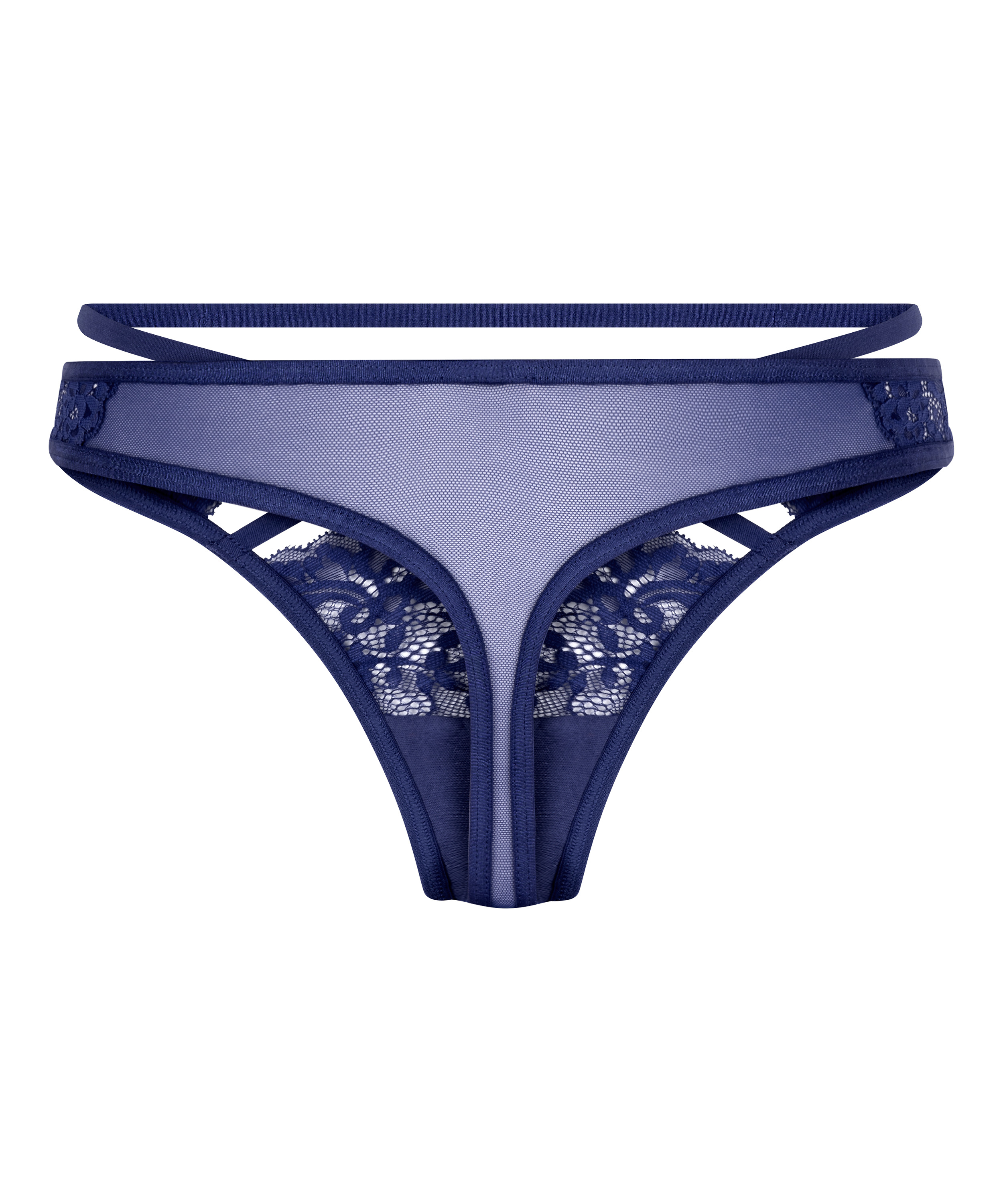 W tych stringach nikt Ci się nie oprze! Stringi posiadają dużo koronki i wiele wycięć. Mają detale w postaci pasków. Zestaw je z pasującym biustonoszem.