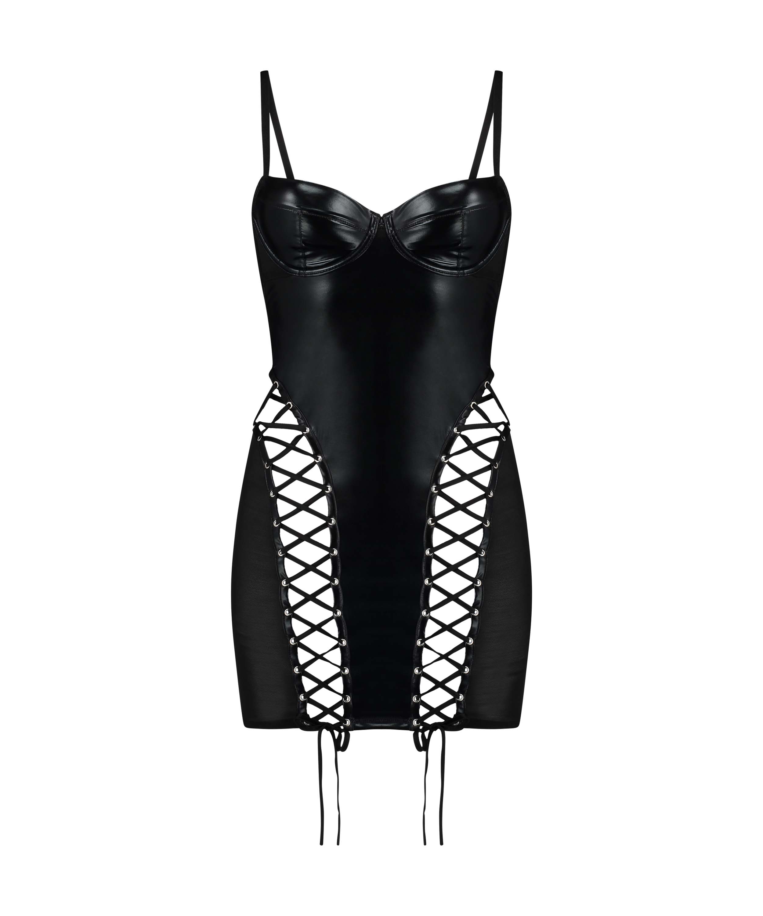 Ta sukienka jest niezwykle seksowna dzięki ramiączkom typu makaroniki i siateczce! Sukienka ma wykończenia z ekologicznej skóry. Stanowi element seksownej kolekcji Private!